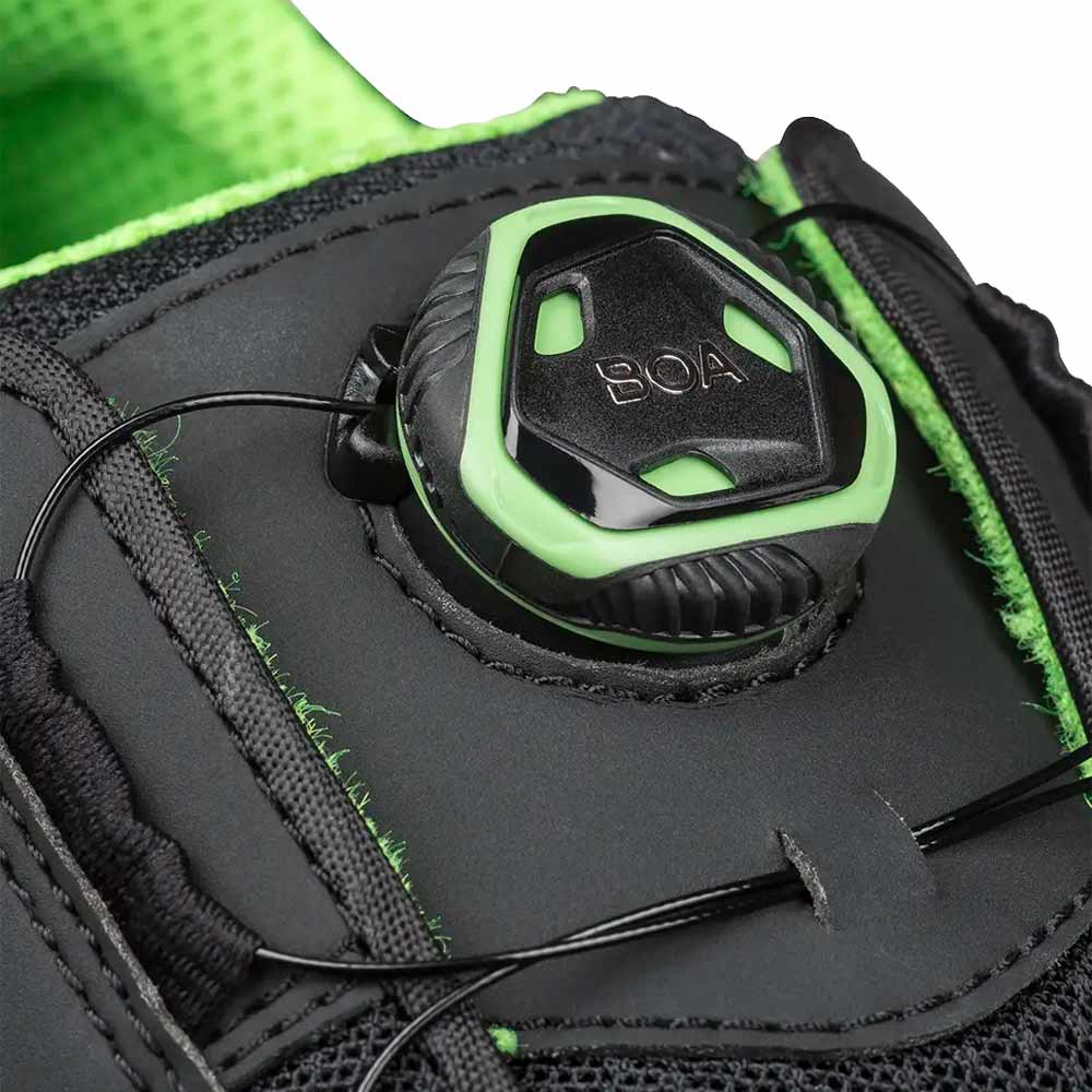 Hengittävä, urheilullinen ja mukava turvajalkine, jossa on vihreitä yksityiskohtia, edistyksellinen Poron XRD -iskunvaimennus, BOA®-kiinnitysjärjestelmä, varvassuoja sekä joustava tekstiilinen naulaanastumisssuoja. Toimivassa ulkopohjassa on hyvin tehokas pitoa parantava kuviointi, ja se on valmistettu erityisestä kestävästä nitriilikumista.