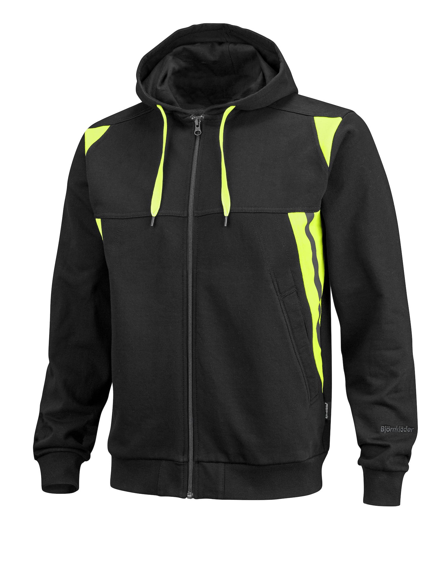 Käytännöllinen ja tyylikäs huppari. Vetoketju edessä, turvatasku oikeassa taskussa ja tummanharmaat heijastimet. Kontrastiväriset osat tuovat modernia ilmettä. Materiaali: 80 % pehmeää puuvillaa ja 20 % kestävää polyesteriä. Sopii niin työhön kuin vapaa-ajalle.