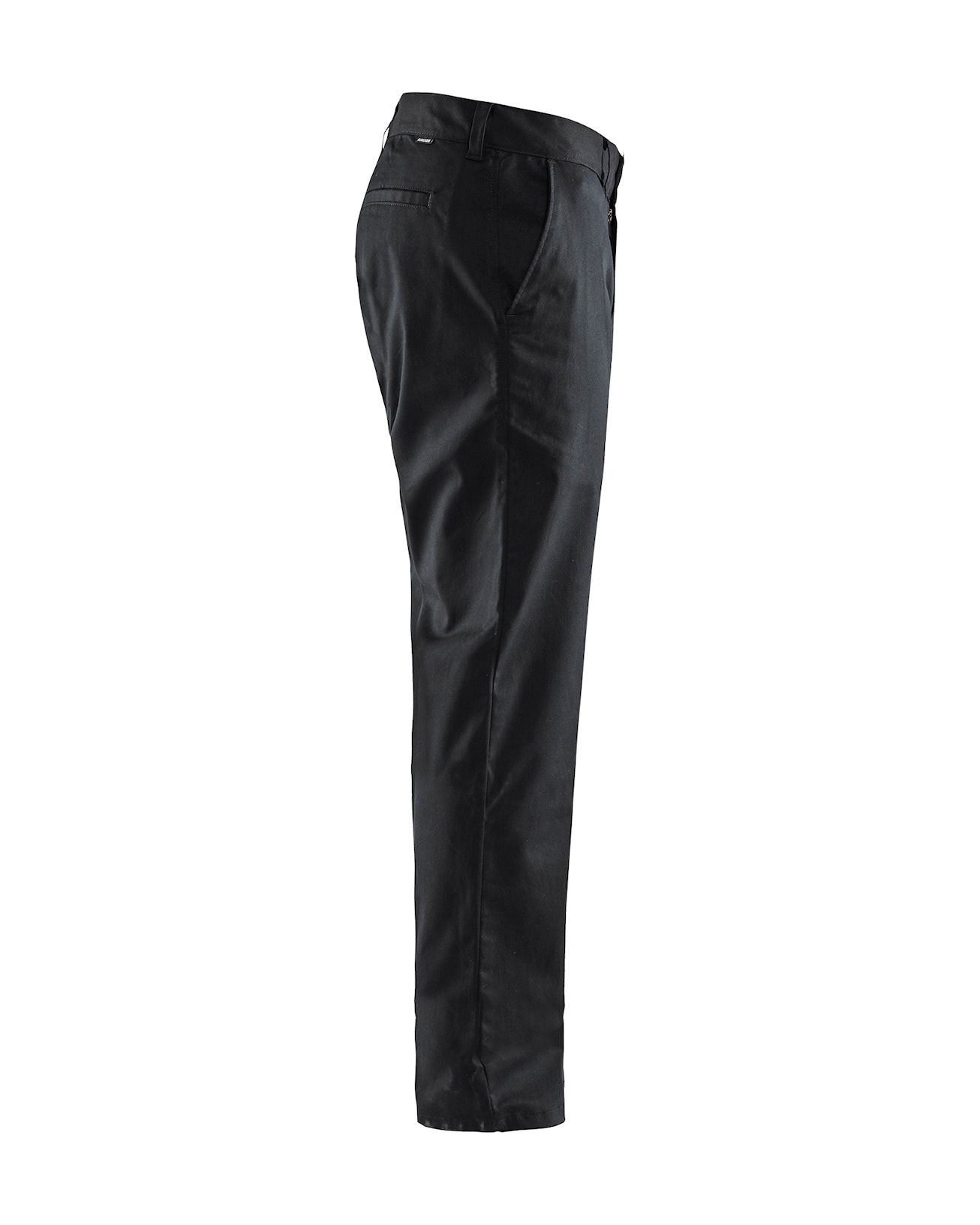 Hieman malliltaan kapeammat chinot joustavasta kankaasta. Erittäin mukavat housut myymälässä työskentelyyn tai ulkomyyntiin. Perinteisten taskujen lisäksi vetoketjullinen lisätasku. Kestää teollisuuspesun.