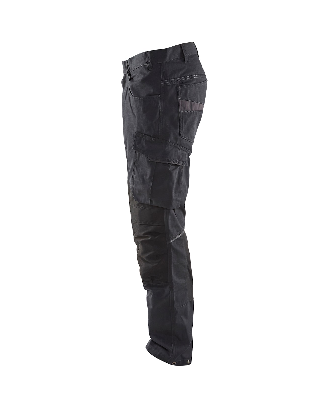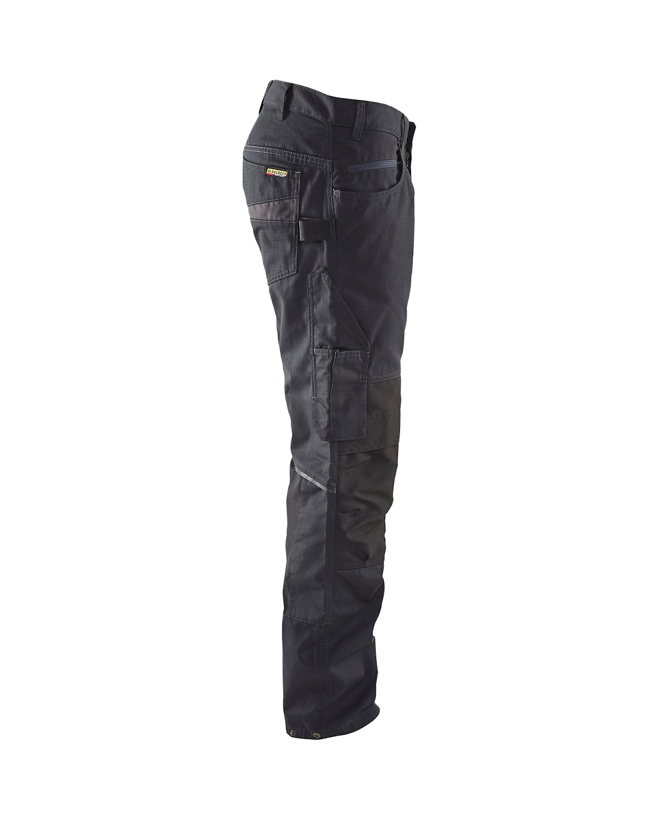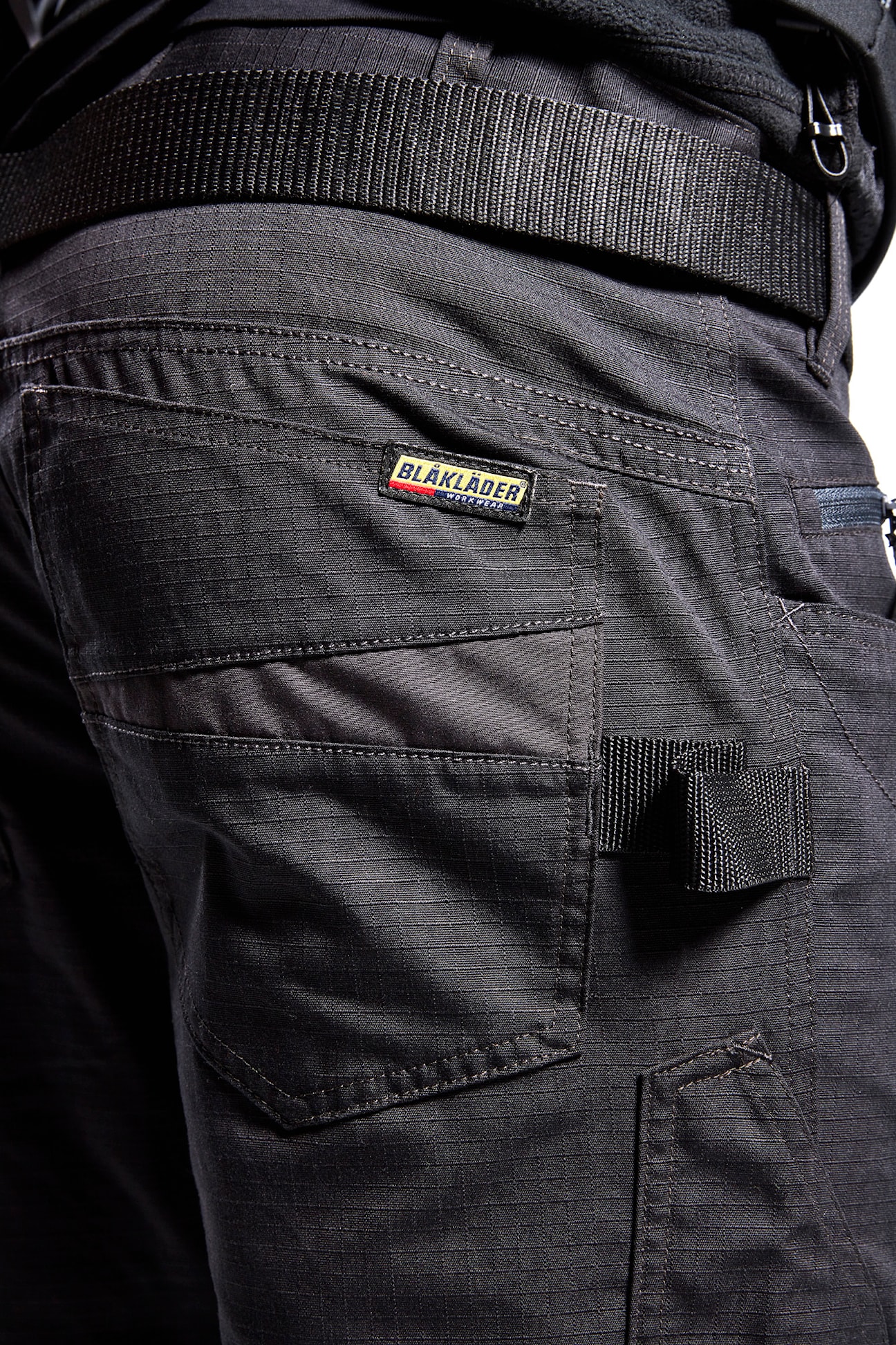 Kestävät ja toiminnalliset ripstop kankaiset housut. Istuvuutta ja mukavuutta varten housuissa on joustavat kangasosiot pohkeissa ja reisien sisäosissa. CORDURA®-stretch polvisuojataskut, joihin polvisuojat asetetaan yläpuolelta. Fiksuja yksityiskohtia kuten pienet heijastimet, verkkokankainen puhelintasku, mittatasku ja käytännöllinen puukon pidike.