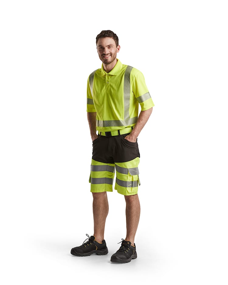 Erittäin mukavat ja joustavat highvis shortsit, joissa etuosa stretch kangasta sekä stretch kangasta myös takapuolella. Vyötärö on myös joustava, mikä entisestään lisää mukavuutta. Paljon yksityiskohtia kuten reisitasku, CORDURA®vahvistetut takataskut, id-henkilökorttitasku sekä puhelintasku. Sertifioitu EN ISO 20471, luokka 1. Yhdistelmä sertifiointi V. OEKO-TEX® MADE IN GREEN – merkintä varmistaa, että tekstiili- ja nahkatuotteet on valmistettu kestävästi ja sosiaalisesti vastuullisesti ja, että tekstiili on turvallinen ja vapaa tunnetuista allergeeneista ja haitallisista aineista. Merkki kertoo myös, että tuotanto on täysin jäljitettävissä.