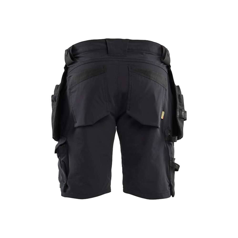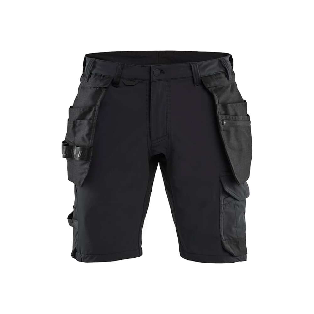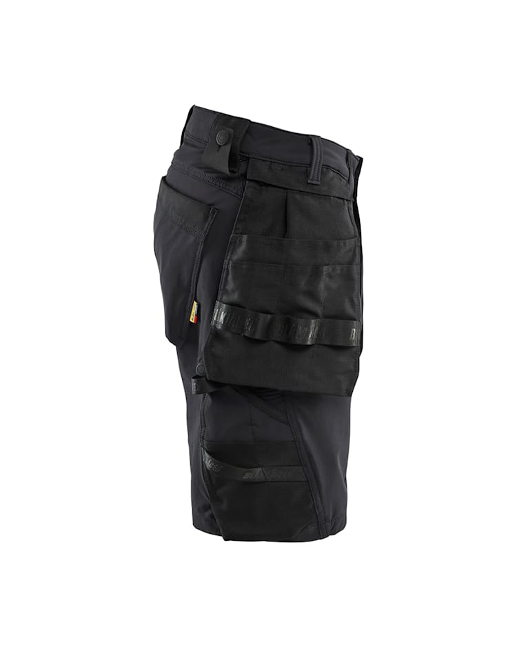 Riipputaskushortsit ohuempaa neljään suuntaan joustavaa materiaalia. Irralliset riipputaskut, palkeelliset takataskut, mittatasku ja vasaralenkit molemmilla puolilla. Naisten malli tuote 7124.