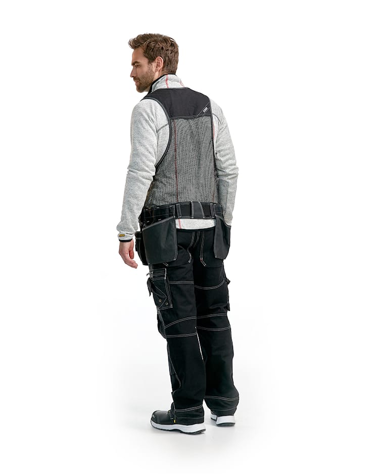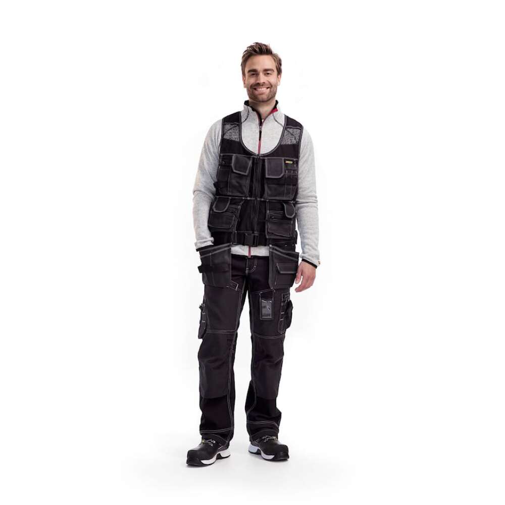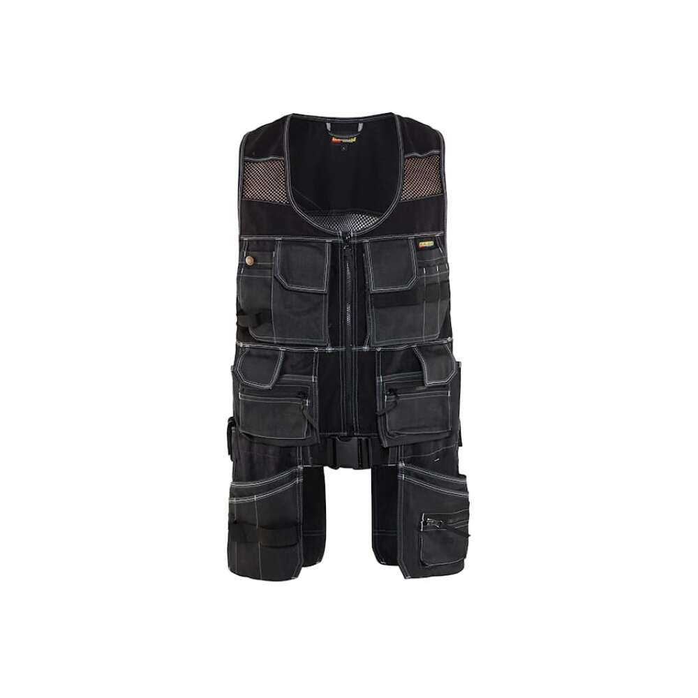 Erittäin moderni riipputaskuliivi, jossa on useita eri taskuja työkaluille ja tarvikkeille. Neljä riipputaskua, jotka voidaan myös irrottaa. Liivissä on vyö, joka vähentää painetta niskasta ja hartioilta. Kaksi vetoketjua edessä, jotta ympärystä voi säätää. Verkkomateriaali ja joustava kangas tekevät liivistä erittäin mukavan ja viileän.