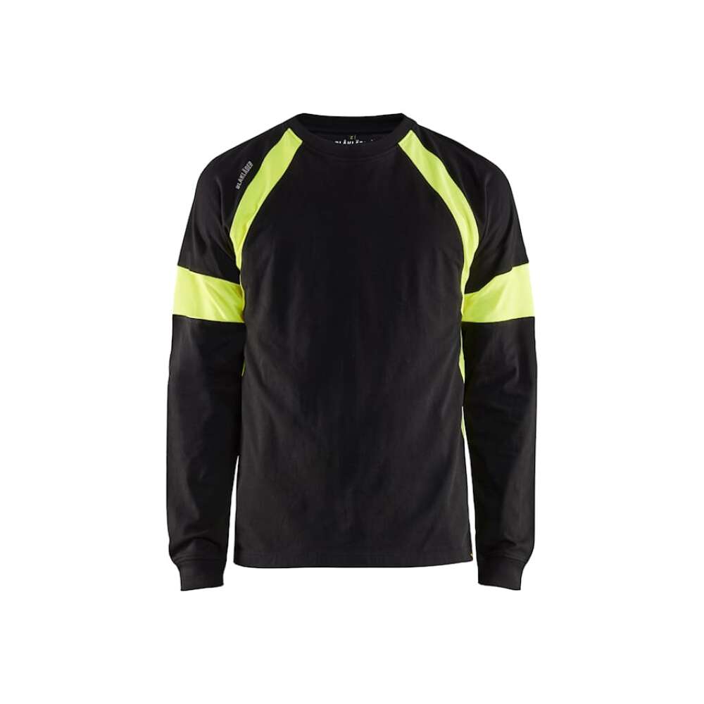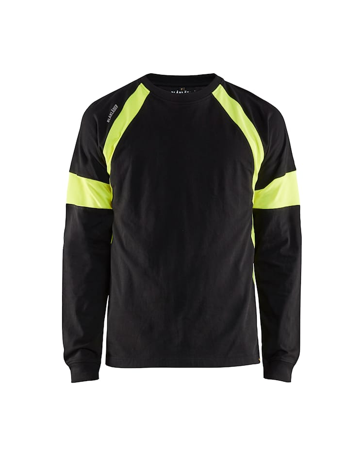 Pitkähihainen t-paita 100% puuvillaa. Huomiokeltaiset osiot lisäävät näkyvyyttä. Soveltuu aloille, joissa heijastimet vaatteissa eivät ole sallittuja.