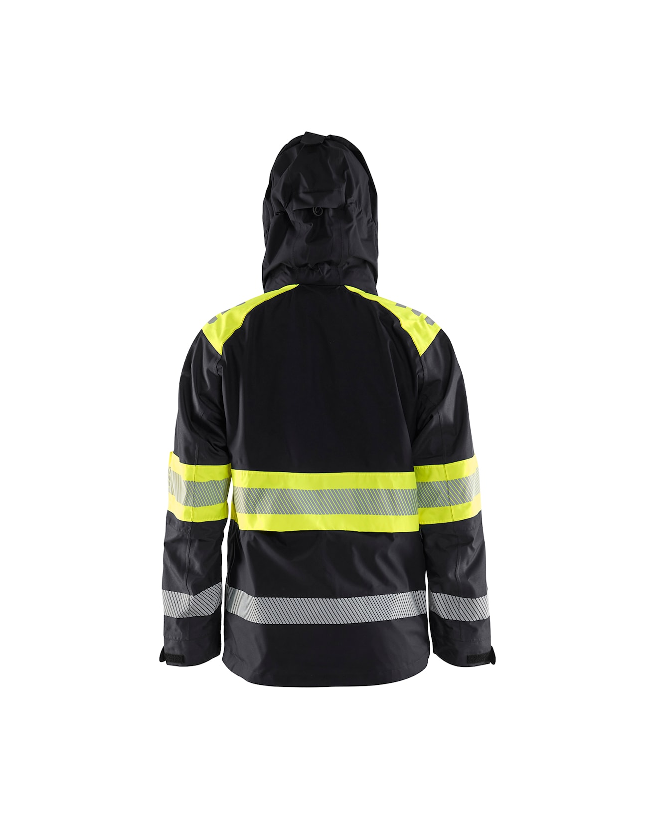 - Tuulen- ja vedenpitävä, hengittävä materiaali. 15000 mm/4 000 g/m²/24 h. Fluoresoivat värit ovat EN ISO 20471 -standardin mukaisia (Näkyvä varoitusvaatetus ammattikäyttöön). Materiaali on EN 343 -standardin luokan 3/3 -mukainen (Suojaus sateelta).