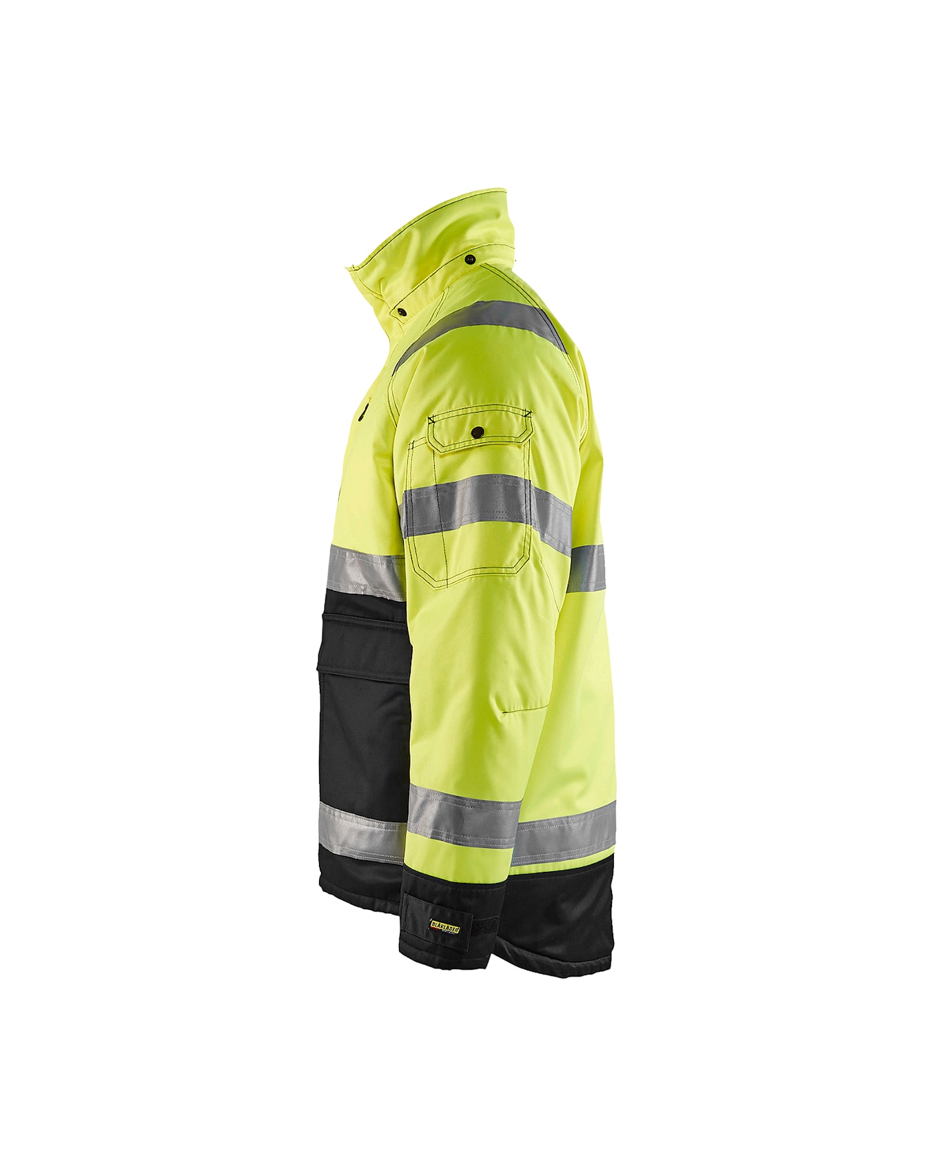 Toimivuuden ja mukavuuden lisäksi voit olla varma, että tulet myös huomatuksi. Takissa on paljon käytännöllisiä ja toimivia taskuratkaisuja hihoissa, rinnassa ja takin sisäpuolella. Takin istuvuutta ja mukavuutta voit säädellä alareunan ja hihojen kiristysnauhoilla. Palkeet selässä lisäävät liikkuvuutta. Sertifioitu EN ISO 20471 luokka 2 (Näkyvä varoitusvaatetus ammattikäyttöön) ja EN342 (Suojavaatetus kylmyyttä vastaan).