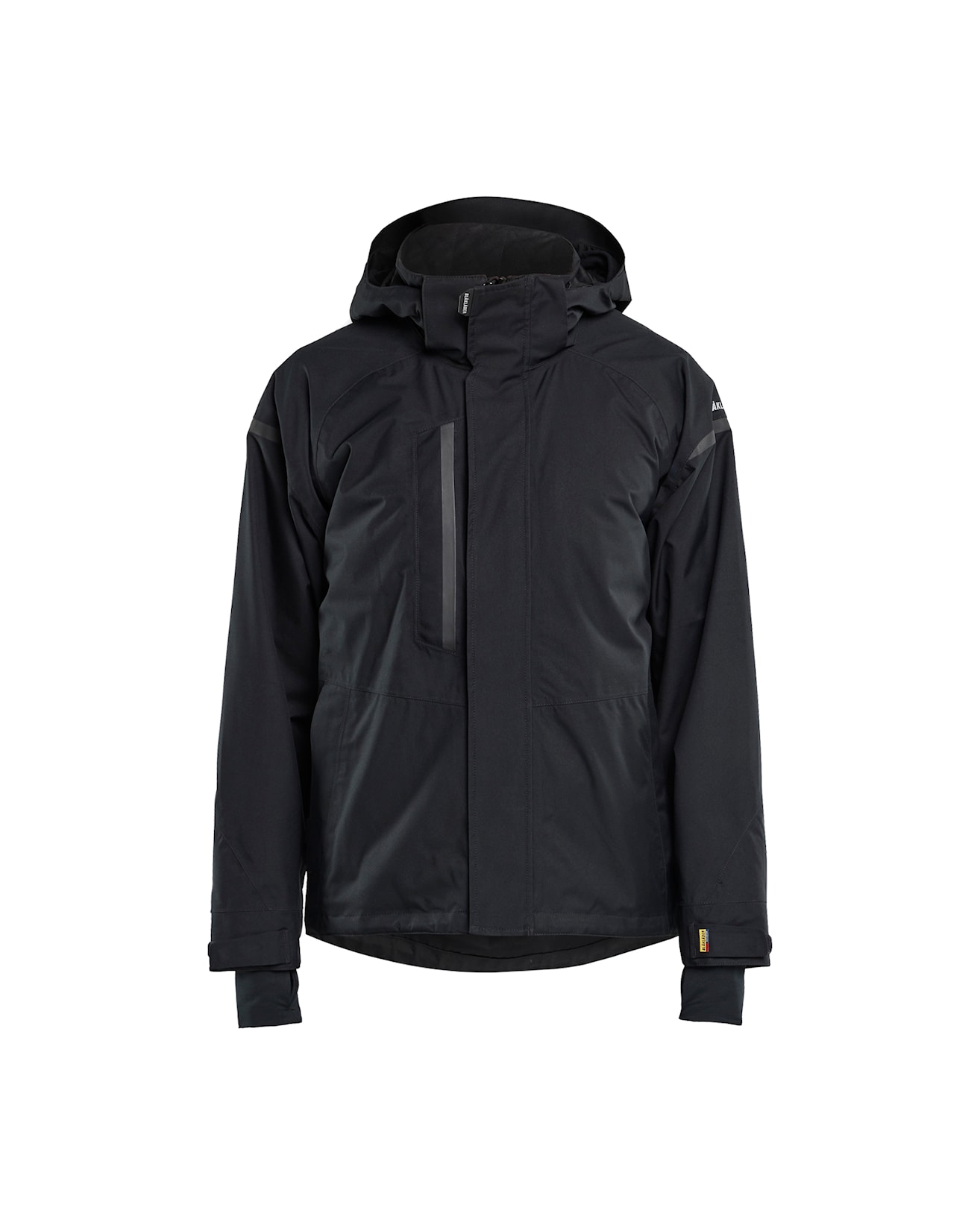 - Tuulen- ja vedenpitävä, hengittävä ja joustava materiaali. 11 000 mm/4000 g/m²/24 h. Fluoresoivat värit ovat EN ISO 20471 -standardin mukaisia (Näkyvä varoitusvaatetus ammattikäyttöön). Materiaali on EN 343 -standardin luokan 3/3 -mukainen (Suojaus sateelta).