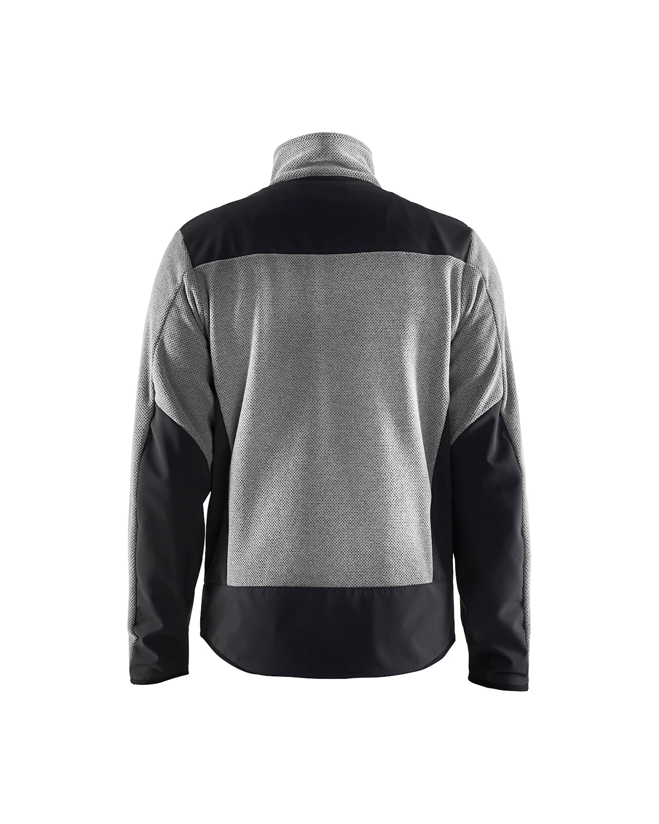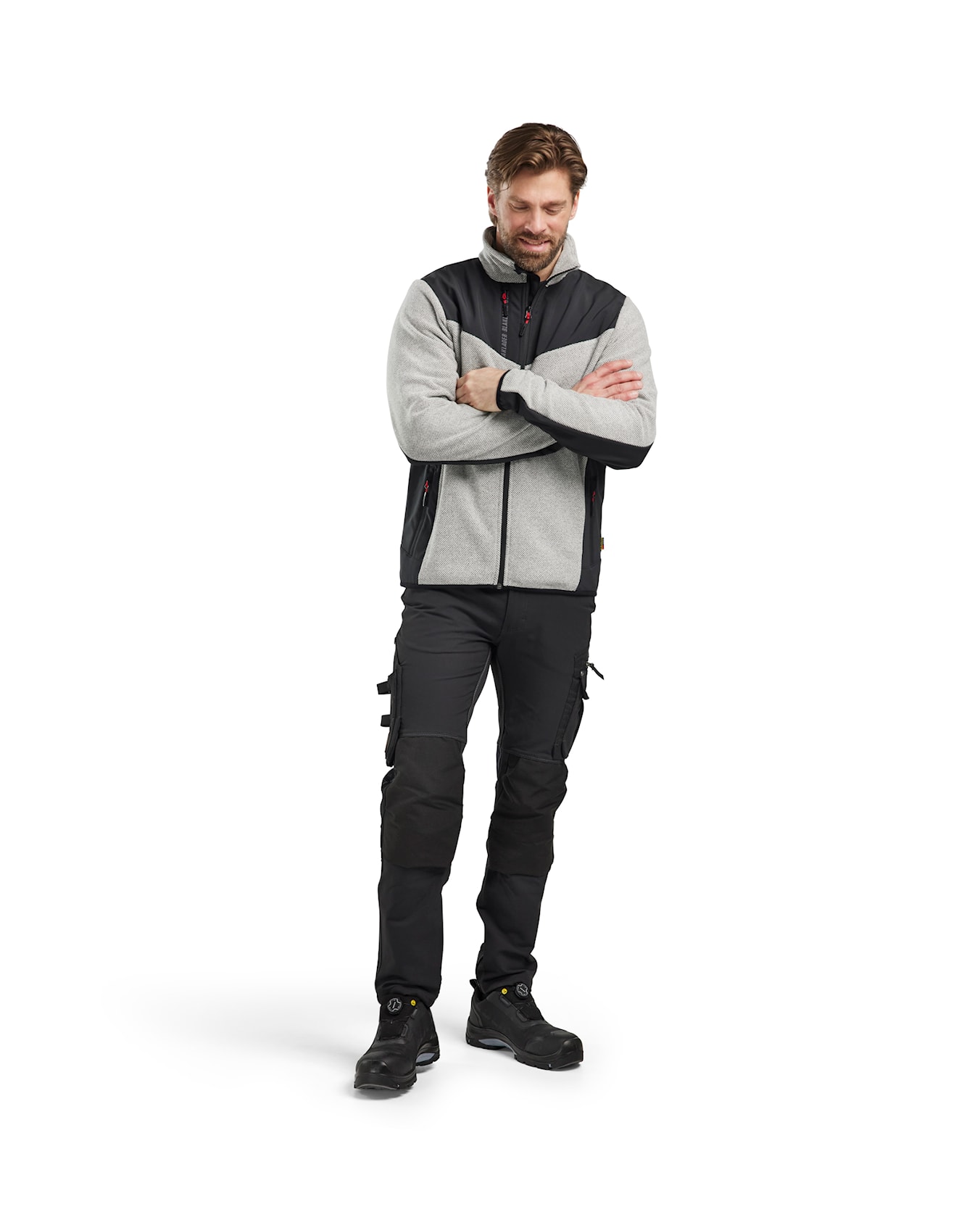 Neulottu takki nuorekkaalla ilmeellä ja mukavan tuntuisella fleecemateriaalilla. Kaksisuuntainen vetoketju edessä. Materiaali on kolmiulotteista fleeceä. Harjattu materiaali antaa takille makean ilmeen 3D-kuviolla ja on joustava, mukavan tuntuinen ja lämmin. Softshell-materiaali hihoissa, hartioilla ja selän alaosassa lisää kestävyyttä. Kainaloissa ei ole softshelliä, jotta hengittävyys olisi parempi. Takissa on paljon tilaa painatuksille ja sopii niin työhön kuin vapaa-ajalle.