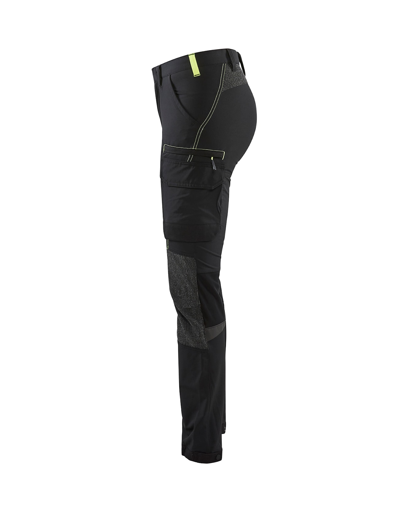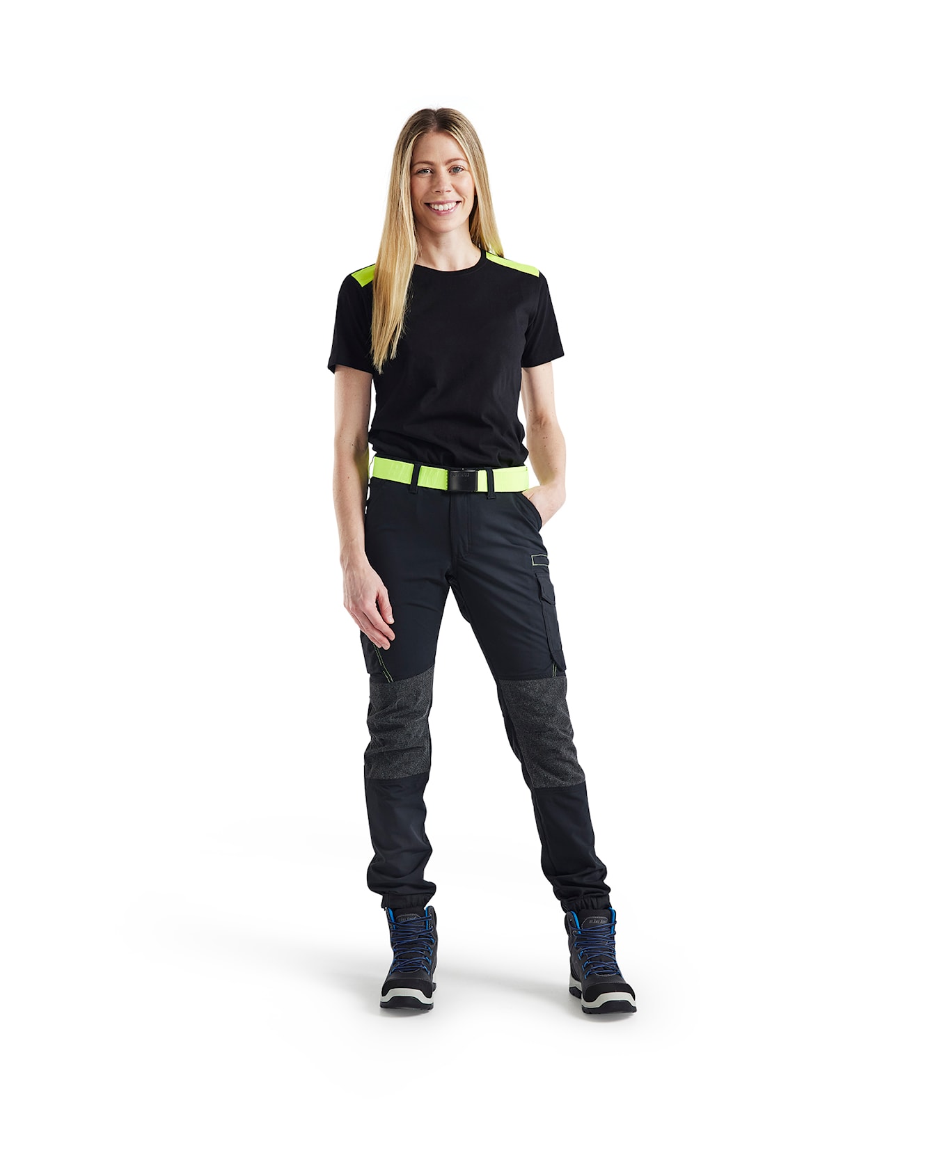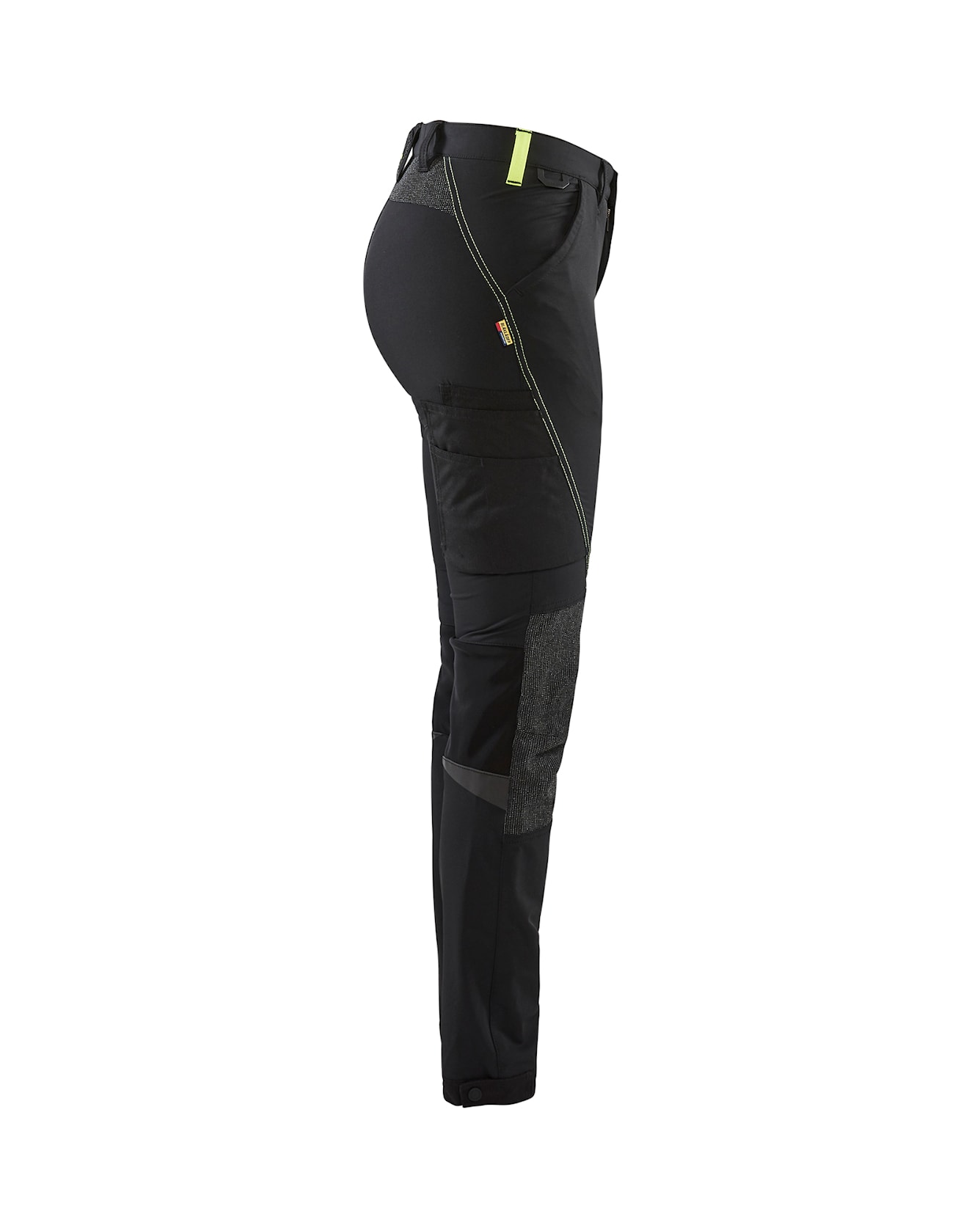 Naisten housut neljään suuntaan joustavasta materiaalista, jotka sopivat niin työhön kuin vapaa-aikaan. Ei naarmuta. Kapeampi ja hieman tiukempi malli, joka miellyttää monia käyttäjiä. Joustava vyötärö antaa lisämukavuutta. Pehmeä ja joustava verkkomateriaali polvitaipeissa tuo hyvää ilmanvaihtoa ja takaosasta vahvistetut lahkeensuut kestävät kulutusta.