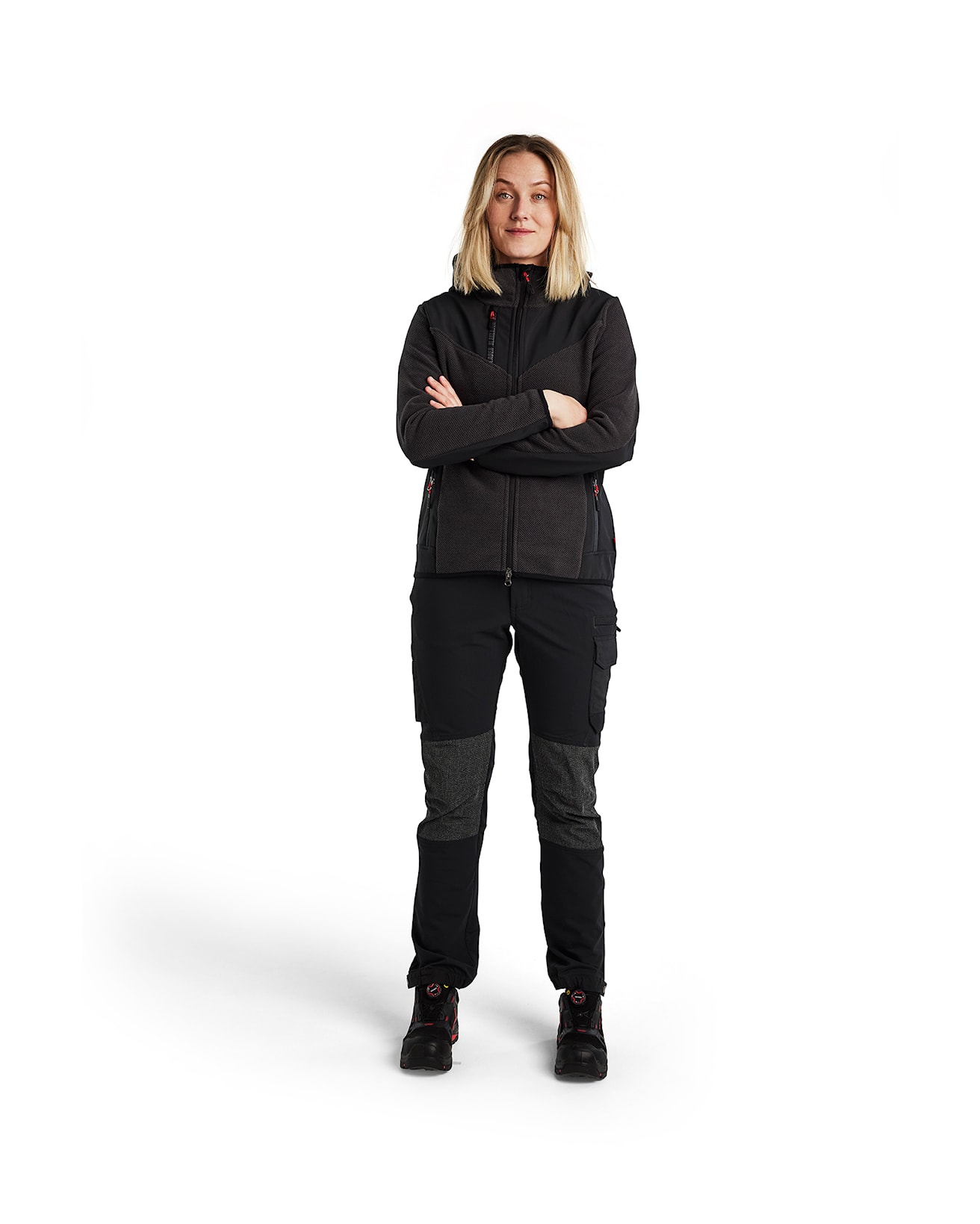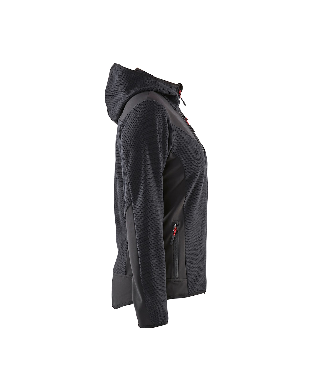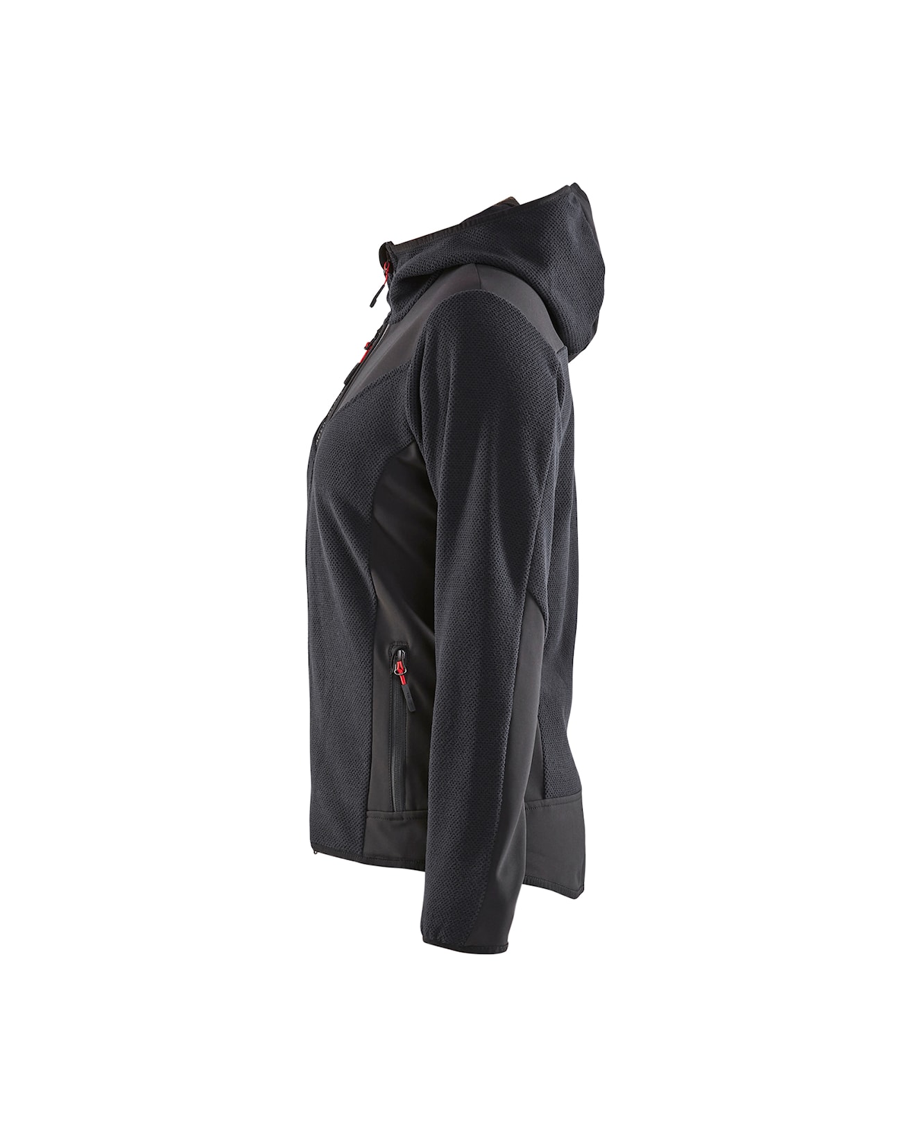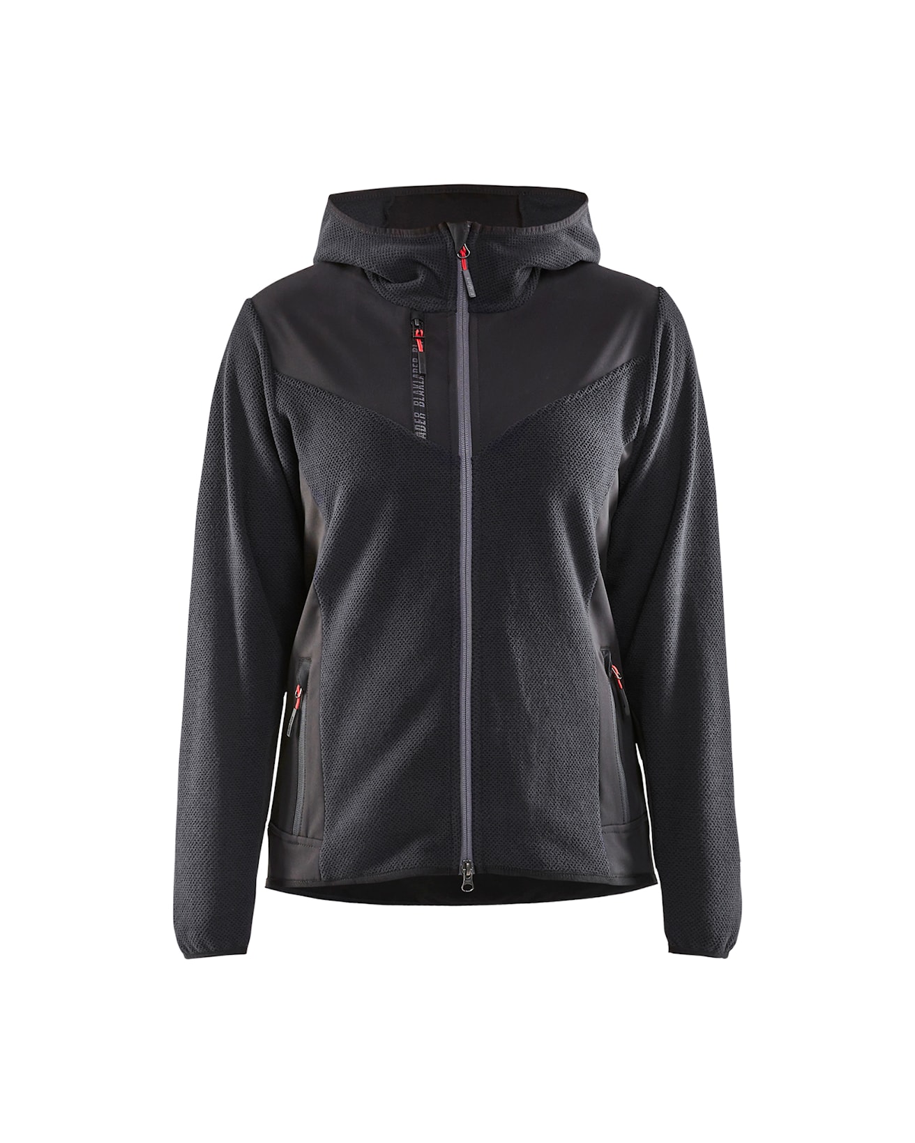 Neulottu naisten takki hupulla, nuorekkaalla ilmeellä ja mukavan tuntuisella fleecemateriaalilla. Takissa on kaksisuuntainen vetoketju edessä ja materiaali on uutta, kolmiulotteista fleeceä. Harjattu materiaali antaa takille makean ilmeen 3D-kuviolla, materiaali on joustava, mukavan tuntuinen ja lämmin. Softshell-materiaali hihoissa, hartioilla ja selän alaosassa antaa lisäkestävyyttä. Kainaloissa ei ole softshelliä, mikä parantaa hengittävyyttä. Takissa on paljon tilaa painatuksille ja sopii niin työhön kuin vapaa-ajalle.