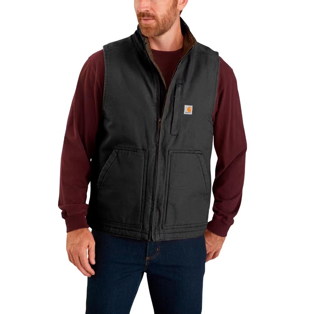 Viileänä päivänä voit pukea kerroksia ja suunnata ulkotöihin tämän sherpa vuorillisen liivin kanssa. Kestävällä cotton duck kankaalla valmistettu liivi tarjoaa sherpa vuorinsa ansiosta runsaasti lämpöä ja käyttömukavuutta. Vetoketjullinen rintatasku ja kaksi sisätaskua tarjoavat säilytystilaa tärkeimmille työvälineille. Wind Fighter™ teknologia tekee tästä Carharttin sherpa vuorillisesta liivistä tuulenpitävän – se on erinomainen valinta tuulisille, pitkille työpäiville ulkona.