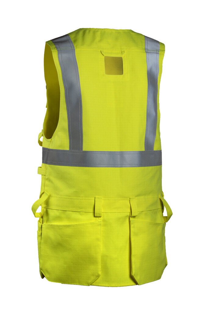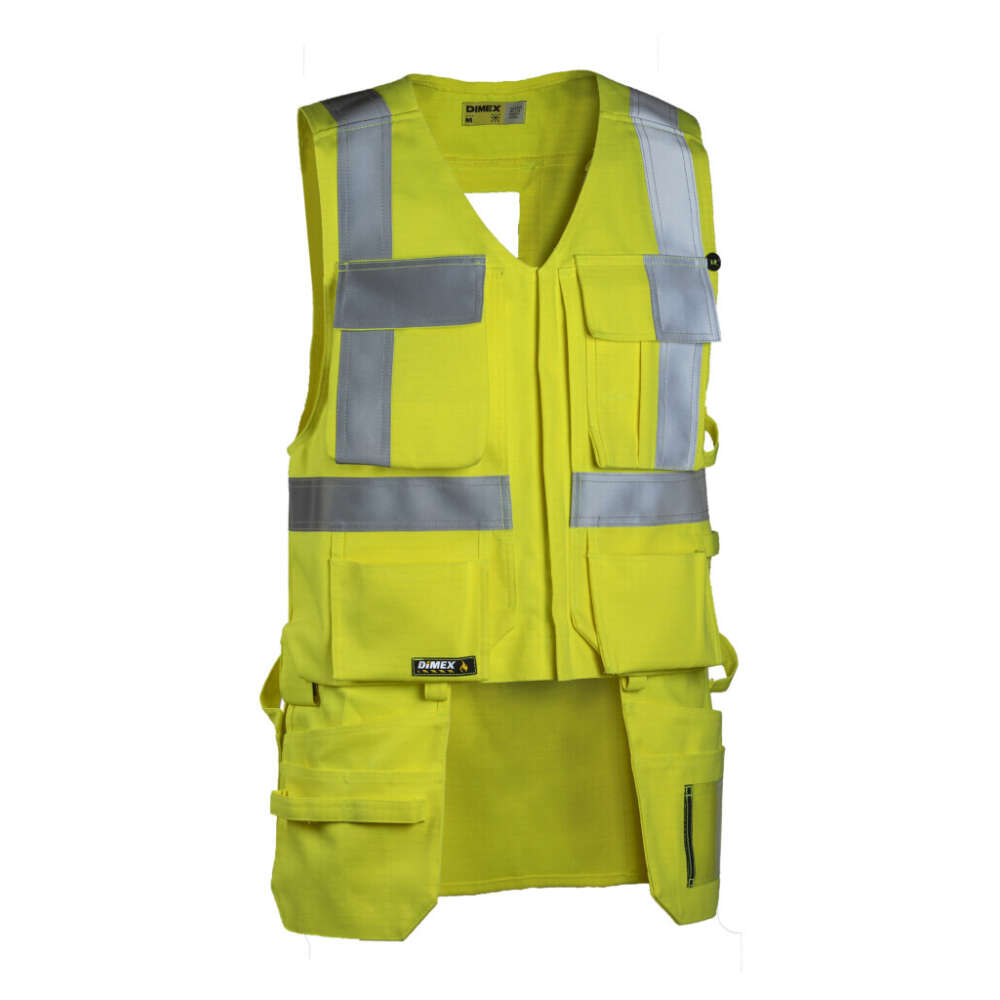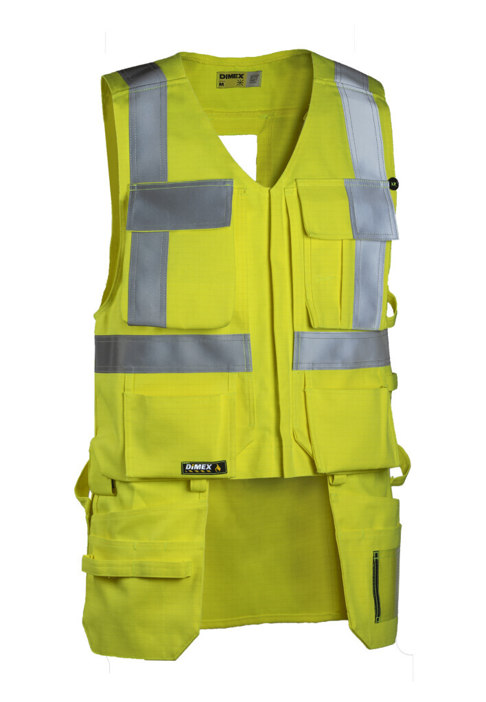 Multituotteessa yhdistyy palosuojaus ja näkyvyyssertifikaatit. Tämä Dimex riipputaskuliivi tarjoaa käyttäjälleen käytännöllisen ja toiminnallisen ratkaisun työkalujen ja tarvikkeiden säilyttämiseen. Riipputaskujen avulla voit säilyttää työkaluja ja tarvikkeita käden ulottuvilla ja helposti saatavilla työskennellessäsi. Tässä tuotteessa on huomioitu myös mahdollisimman hyvä käytettävyys levennyspalalla ja olkakappaleiden pidennysvaralla. Selässä aukko turvavaljaille ja ripustuslenkki. Valmistettu kestävästä ja laadukkaasta materiaalista, joka kestää kulutusta ja säilyttää muotonsa pitkäaikaisessa käytössä.