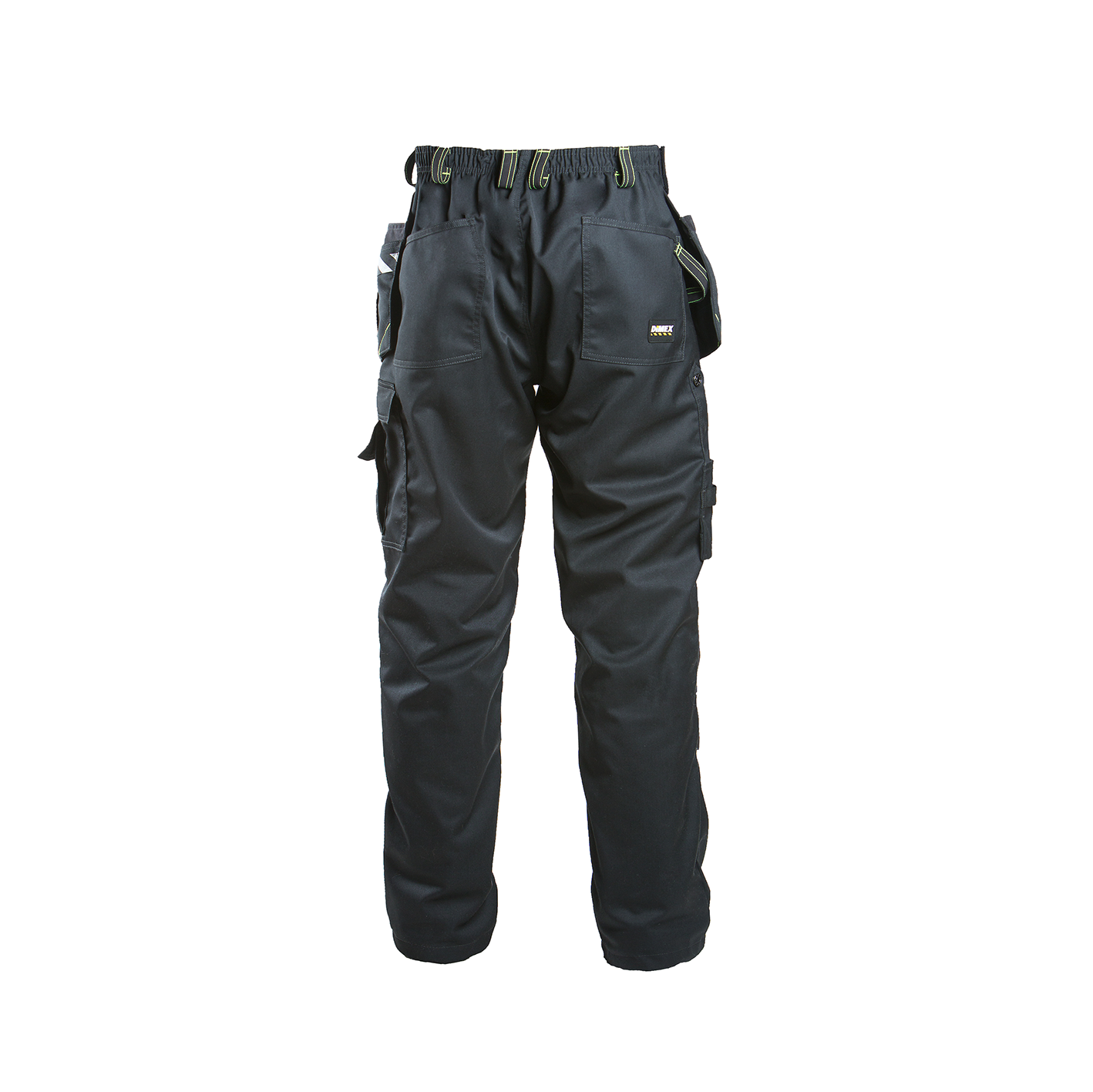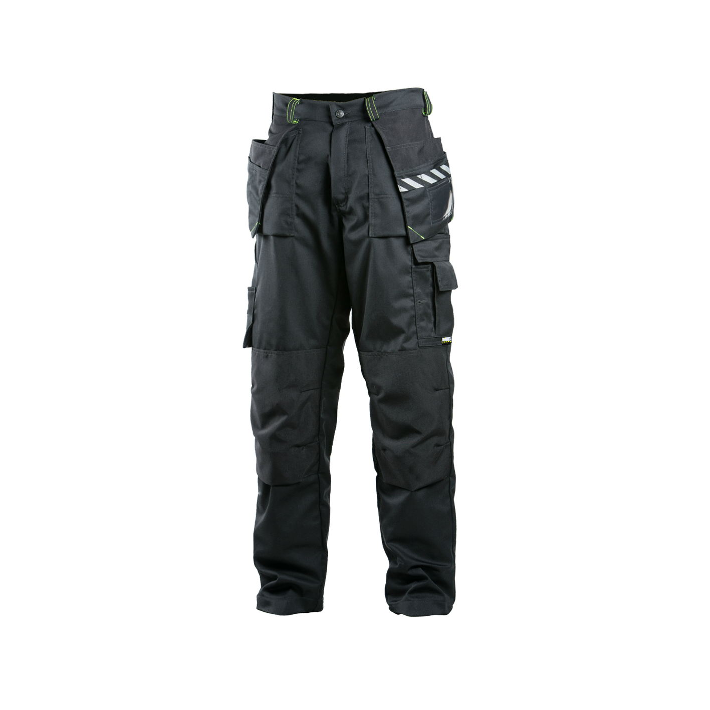 Mustat riipputaskuhousut, jotka eivät taatusti kiristele. Tykki valinta kokoonpanolinjalle! Taskut on vahvistettu Corduralla, joten raskaammatkin työvehkeet pysyvät mukana! Sopii teolliseen pesuun.