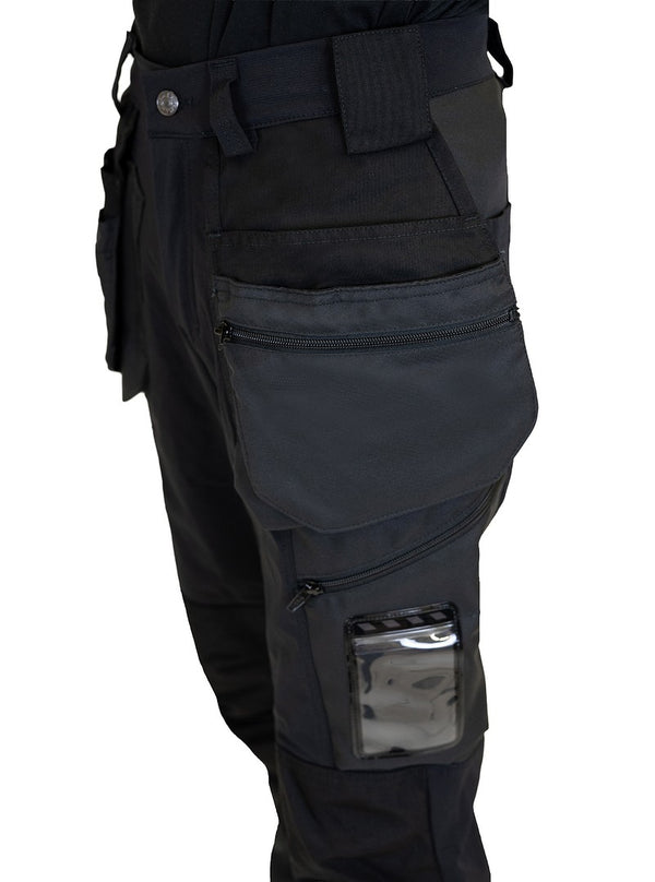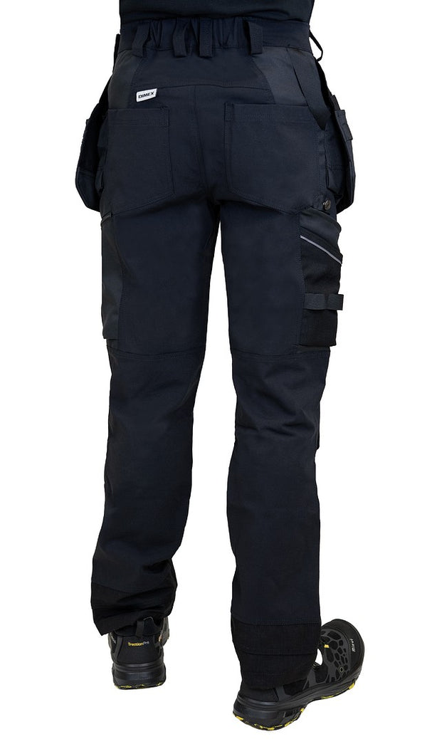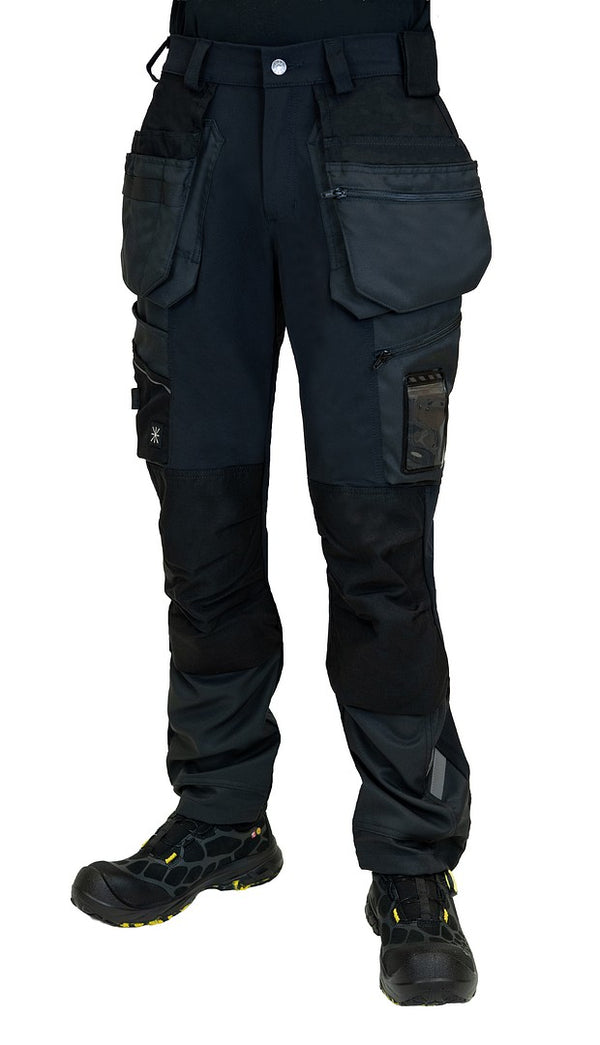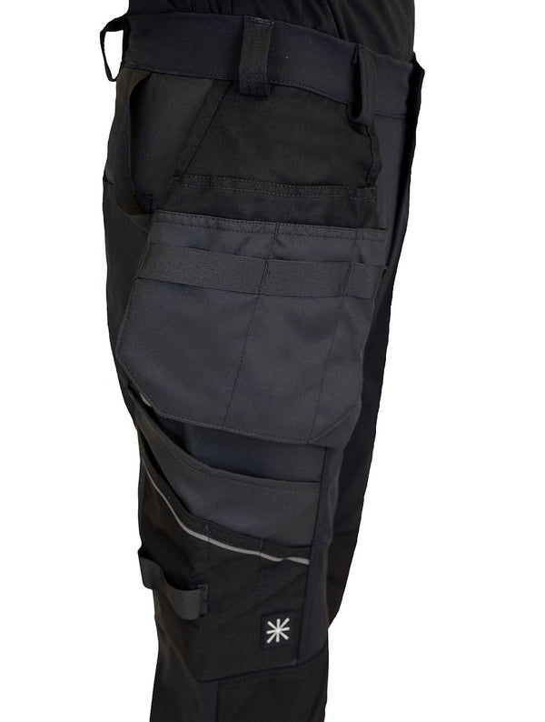 Joustavat riipputaskutyöhousut polvisuojataskuilla, Cordura-vahvikkeilla ja heijastimilla