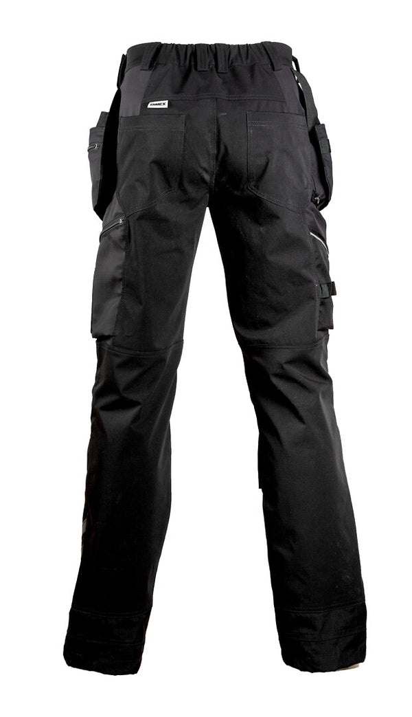 Dimex 60862X Stretch RT -työhousut D-mitoituksella on suunniteltu ammattilaiselle, joka tarvitsee joustavat ja kevyet riipputaskuhousut pitkäksi työpäiväksi. Miellyttävä stretch-materiaali ja takaa joustava vyötärö seuraavat liikettä kyykätessä, kiivetessä ja kantaessa, joten työskentely tuntuu sujuvalta ilman kiristävää vyötäröä. Käytännölliset riipputaskut sekä vetoketjullinen reisitasku pitävät työkalut ja tarvikkeet nopeasti saatavilla, ja kynätaskut sekä puukkolenkki helpottavat erityisesti asennus-, huolto- ja rakennustöissä.