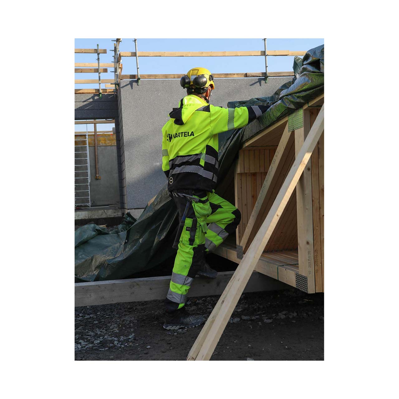 - Yhdisteltävyys näkyvyysluokkaan 3 yhdessä 1 lk:n housujen kanssa M-koosta lähtien.