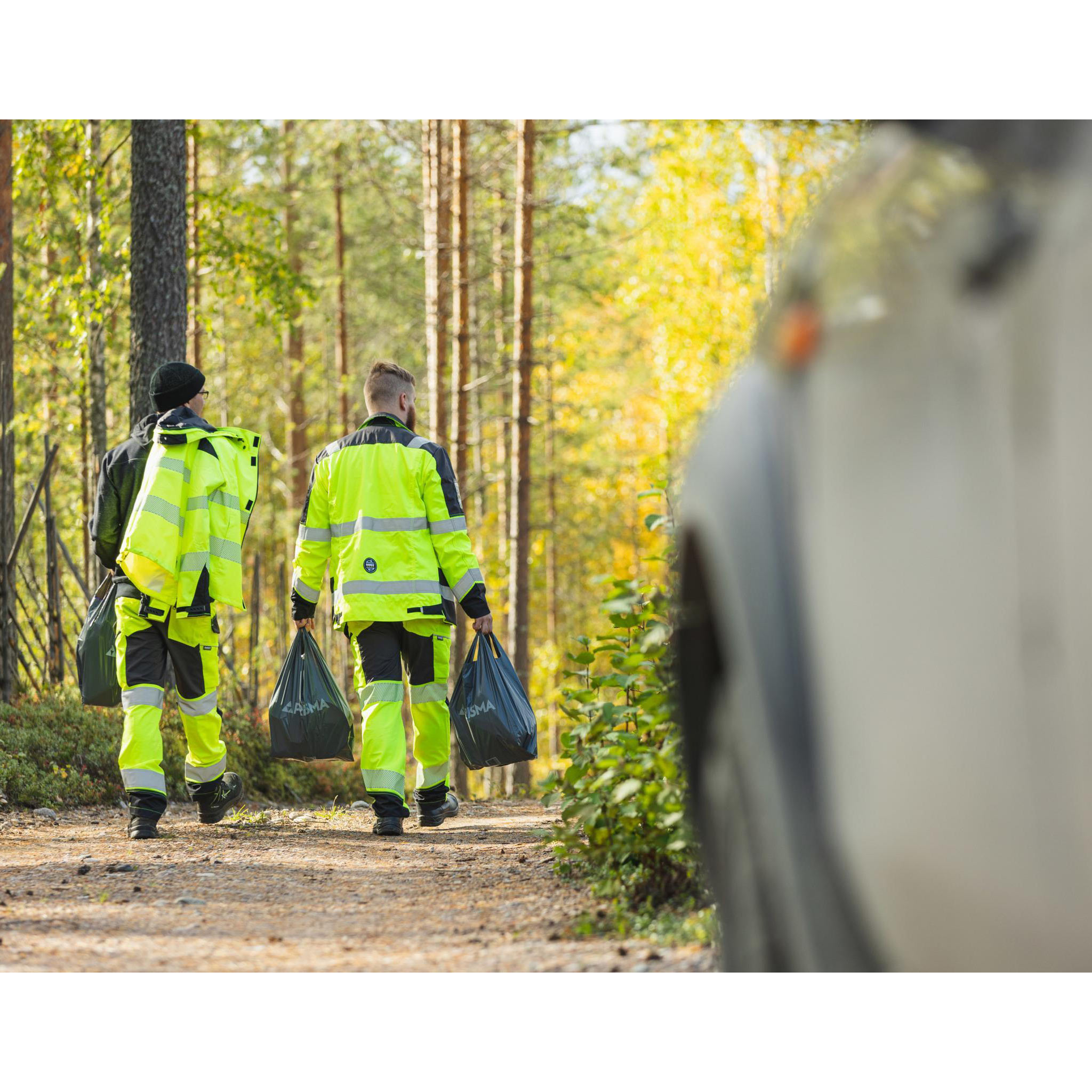 Kestävät ja skarpit työhousut, joissa on käytetty luontoa säästävää kierrätysmateriaalia vetoketjuista lähtien. Housuista on karsittu ylimääräinen hölynpöly pois, mutta niistä ei ole unohdettu mitään tärkeää! Sinulle, joka tarvitset 2 luokan näkyvyyttä.