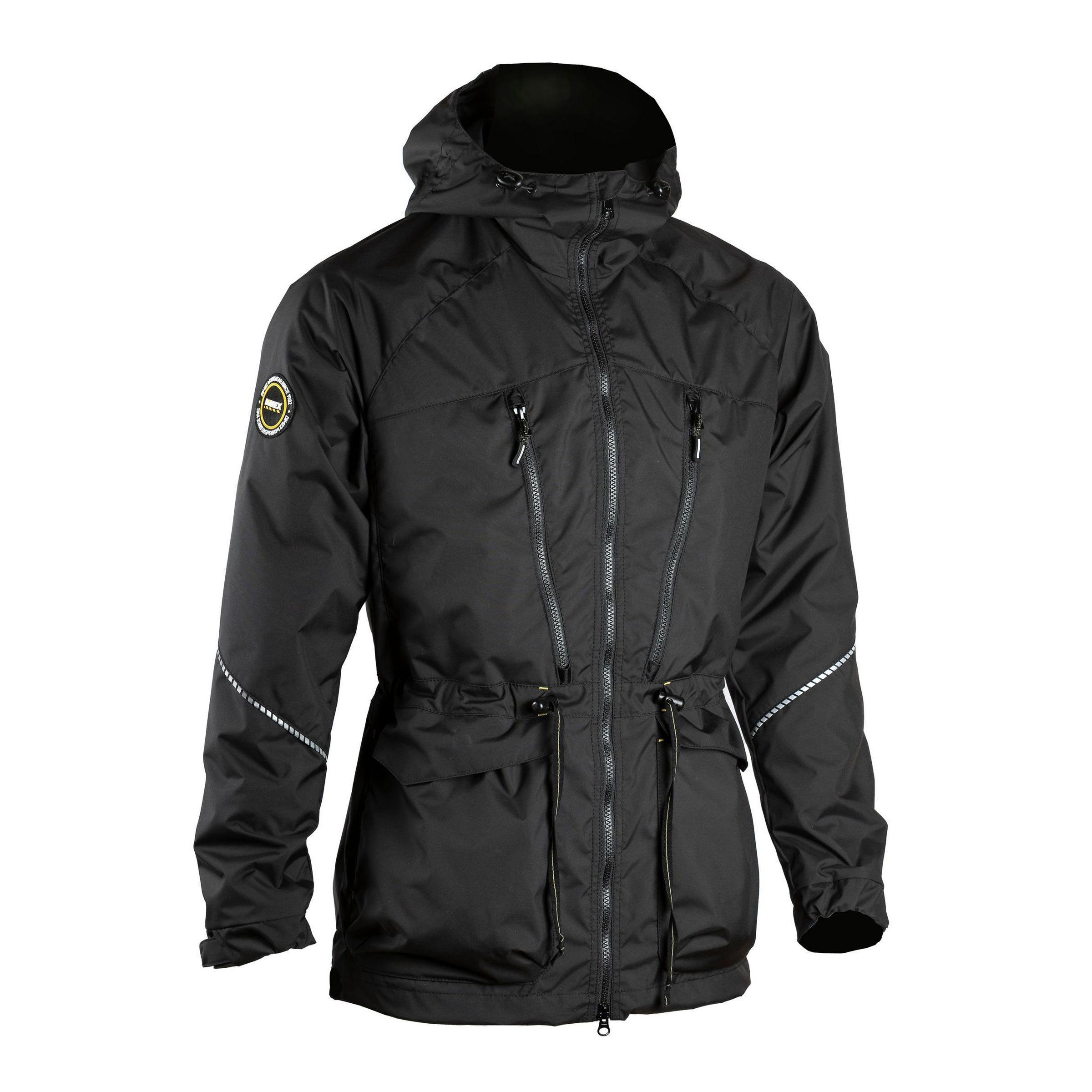 - Kahdella joustonyörillä säädettävä myrskyhuppu, hupun lipassa keltaiset tikkaustehosteet