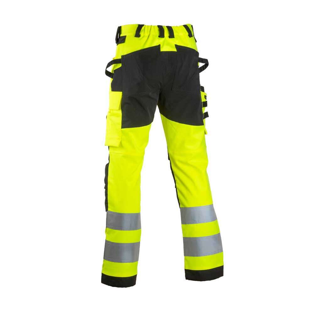 Tässä joustavassa työhousussa yhdistyy monta toiminnallisuutta sujuvaksi kokonaisuudeksi. Tuotteeseen saa lisättyä erikseen myytävät vetoketjukiinnitteiset irtoriipputaskut. Paikkoja löytyy monipuolisesti erilaisille työvälineille. Housujen lahkeissa on huomioitu pidennys- sekä lyhennysvara. Takaosasta löytyy neljään suuntaan joustava stretch-materiaali.