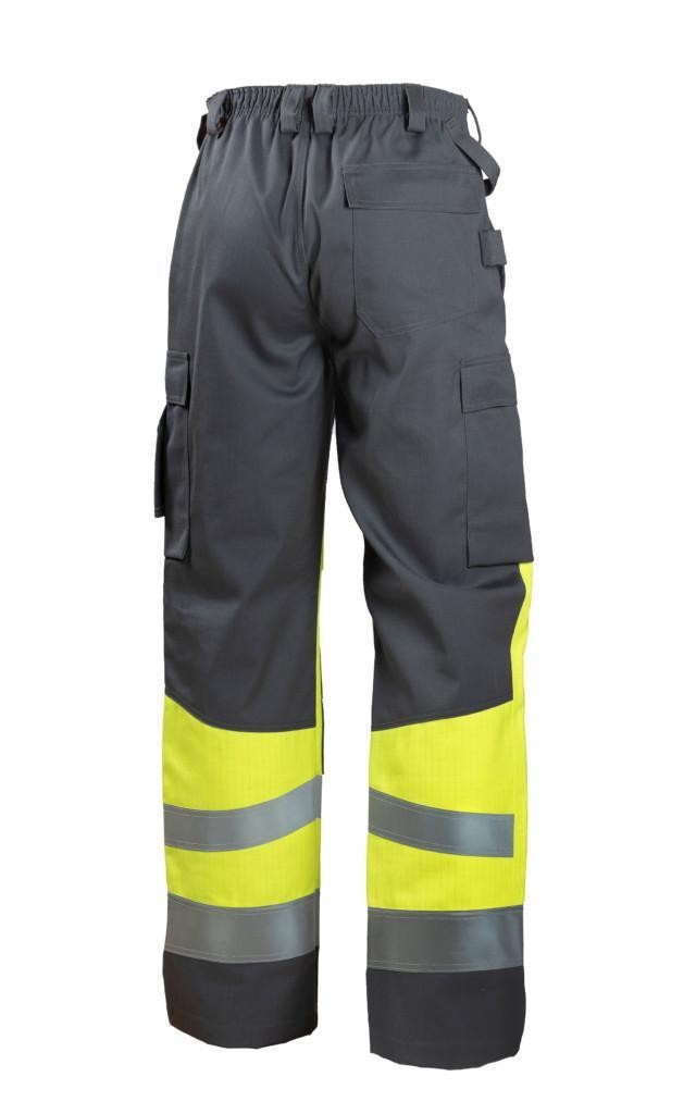 Palosuojatun kankaan ansiosta pystyt suojassa vaikka vähän kipinät lentelisivätkin! Vyötärön kuminauhan ansiosta housut istuvat kuin valettu ja hujopeille ollaan lisätty myös 4 cm pidennysvara lahkeisiin.