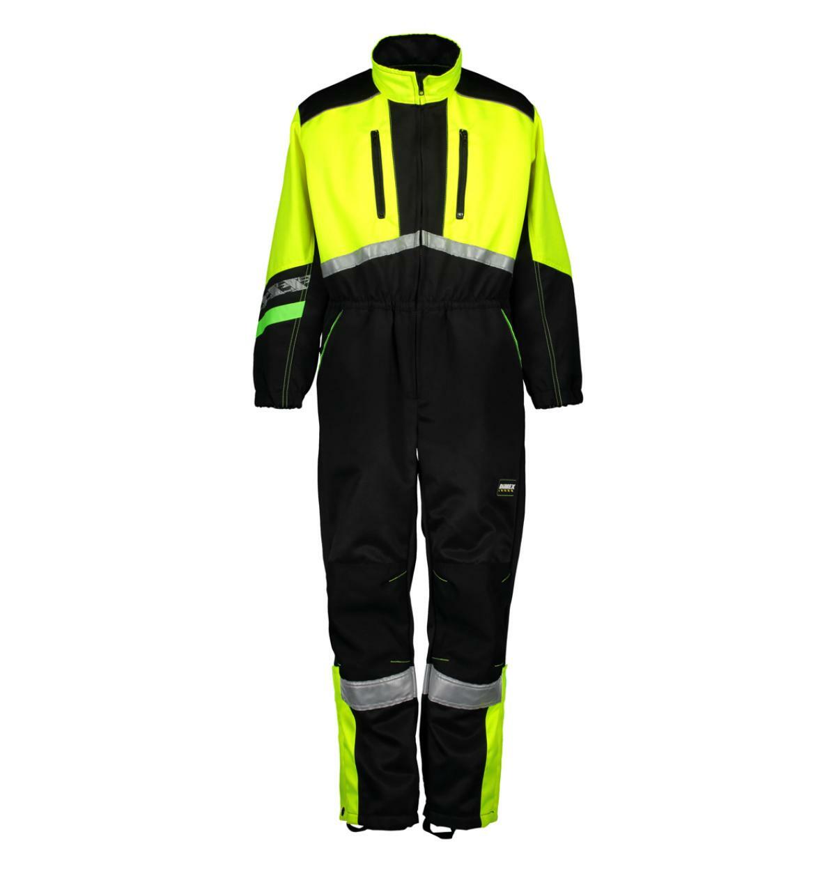 • Etuvetoketjun alla tuulilista. Vetoketjulliset rintataskut. Etutaskut ja kannellinen takatasku. Säädettävä kuminauhakiristys vyötäröllä. Hihansuussa kuminauha. Cordura-vahvikkeet polvissa ja lahkeensuissa takana. Polvimuotolaskokset. Irrotettavat ja säädettävät kuminauha-jalkalenkit nappikiinnityksellä. Lahjeketjut listan alla, listassa nepparikiinnitys. Heijastimet edessä, takana, hihassa ja lahkeissa.