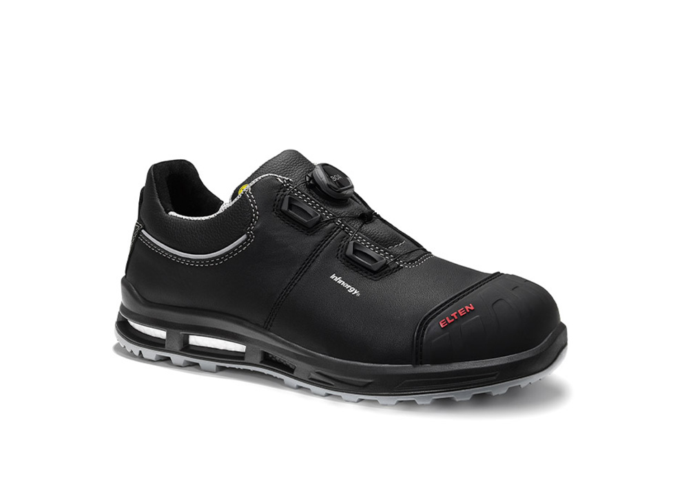 Nämä EN ISO 20345:2022 S3S -luokan turvakengät on suunniteltu ammattikäyttöön, jossa korostuvat turvallisuus, käyttömukavuus ja keveys. Päällinen on valmistettu kestävästä naudannahasta, joka hylkii vettä ja kestää kulutusta. Hengittävä tekstiilivuori tukee luonnollista ilmanvaihtoa ja pitää jalat kuivina myös pitkien työpäivien aikana. Täysin pehmustettu paljekieli lisää käyttömukavuutta ja estää pölyn ja lian pääsyn kengän sisään. Täyspitkä ESD PRO -pohjallinen, joka sisältää kierrätysmateriaalia, tukee jalkaa ergonomisesti ja vähentää rasitusta seisten ja kävellessä. Turvallisuudesta huolehtivat komposiittinen varvassuoja ja TPU-kärkivahvike, jotka suojaavat iskuilta ja kulumiselta ilman ylimääräistä painoa. Metalliton, naulanläpäisyn kestävä välipohja lisää jalkaturvallisuutta. PU/PU WELLMAXX TRAINERS -ulkopohja, jonka ydin on valmistettu Infinergy® by BASF -materiaalista, palauttaa energiaa askelesta ja vähentää jalkojen rasitusta. BOA® Fit System mahdollistaa nopean ja tarkan kiristyksen yhdellä kädellä. Erinomainen valinta teollisuuteen, varastoihin, logistiikkaan, rakennustyöhön ja huoltotöihin, joissa tarvitaan kestävää ja ergonomista turvakenkää.