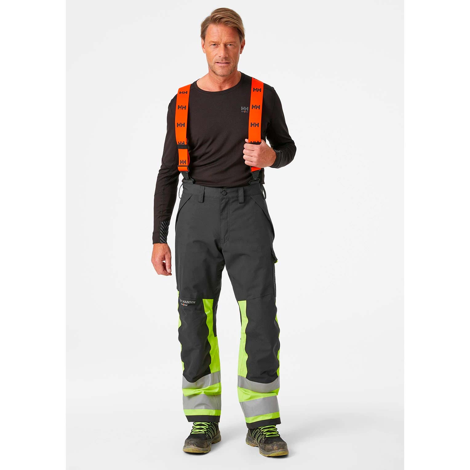 Luokan 1 Alna 2.0 -talvihousuissa on hyvä istuvuus, Painetut heijastimet sekä innovatiiviset taskut varmistamassa mukavan olon ja hyvän näkyvyyden kylminä talvipäivinä työmaalla.