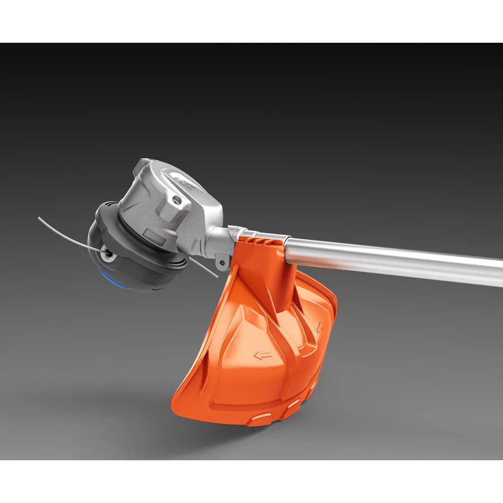 Kevyt ja tehokas kaksoiskahvainen, kahteen suuntaan pyörivällä siimapäällä varustettu akkukäyttöinen ruohotrimmeri ammattikäyttöön. Täydellinen puutarhureille, viheralanammattilaisille ja urakoitsijoille. Ominaisuuksina erinomainen ergonomia ja tasapaino, kahteen suuntaan pyörivä siimapää ja pitkäikäinen hiiliharjaton moottori. Mukana toimitetaan mukavat valjaat. Hinta ei sisällä akkua eikä laturia.