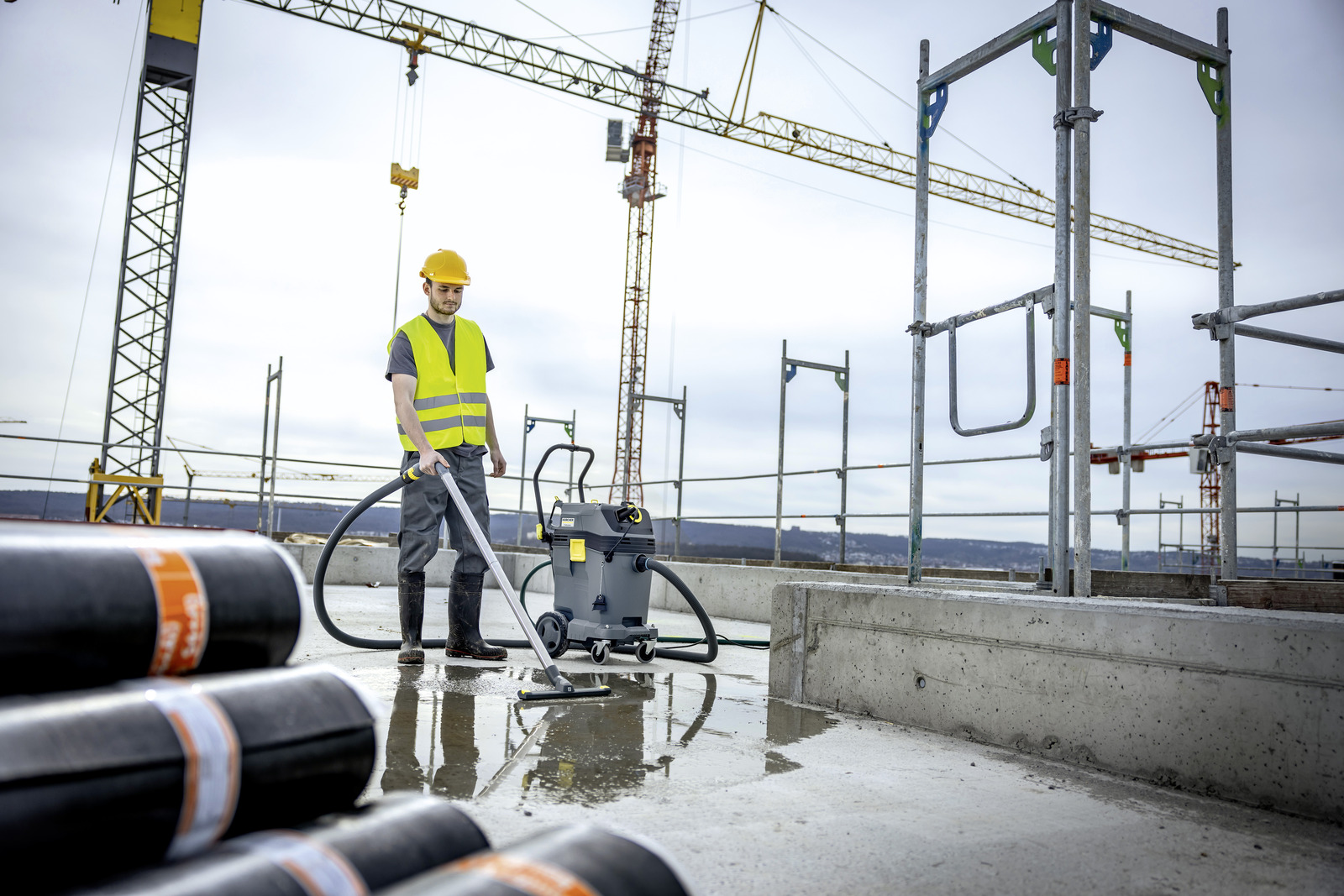Uusi NT 50/1 K märkä-kuivaimuri on tarkoitettu kohteisiin, jossa on tarve siirtää suuria nestemääriä imurin avulla tehokkaasti ja ergonomisesti. Säiliön sisällä olevan tyhjennyspumpun kapasiteetti on 300 l/min ja se kykenee siirtämään partikkeleita aina 20 mm kokoon saakka. Tämä yhdessä 50 litran säiliön kanssa mahdollistaa pitkäkestoisen ja keskeytymättömän työskentelyn esimerkiksi vahinkosaneerauskohteissa. Kestävä ja erittäin helppokäyttöinen NT 50/1 K sopii erinomaisesti myös teollisuuden, maatalouden ja rakentamisen siivouskohteisiin. Imuturbiini ja poistopumppu on mitoitettu suurille volyymeille ja vaativiin olosuhteisiin. Imukahvassa oleva säädin mahdollistaa imuroitavan nesteen määrän optimoimisen poistopumpun tehoa vastaavaksi. Poistoletkulle on valmiina kynsiliitin laitteen rungossa. Erillisen tyhjennysletkun avulla säiliö voidaan tyhjentää helposti myös lattiakaivoon. Säiliössä on helposti puhdistettava esierotin, joka suojaa pumppua kiviltä ja muilta roskilta. Vakiovarustukseen kuuluu karkean lian suodatin. Laitteella voidaan imuroida myös kuivaa likaa varustamalla se lisävarusteena myytävällä laakasuodattimella.