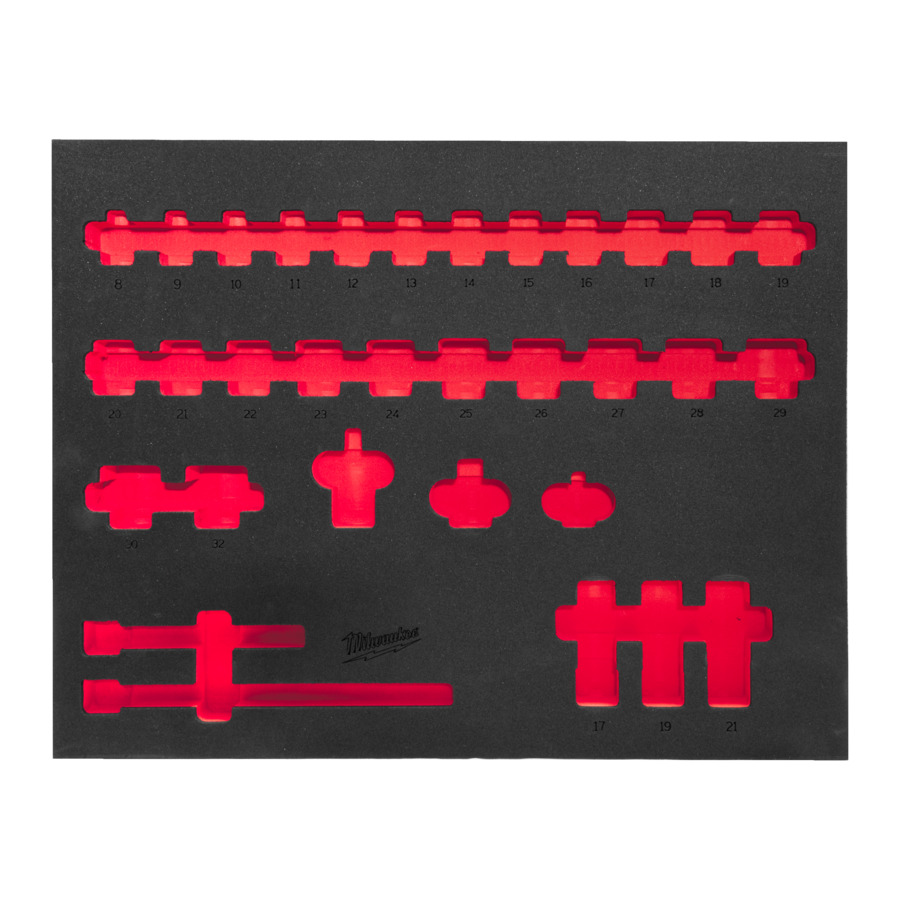 Tyhjä vaahtomuovialusta muovipohjalla 1/2″ hylsyille, koko 417 x 536 mm.