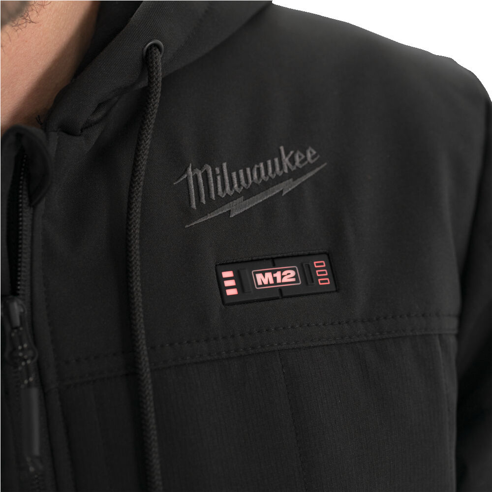 - Piilotasku M12™-akulle mahdollistaa akun asettamisen takin etu- tai takapuolelle