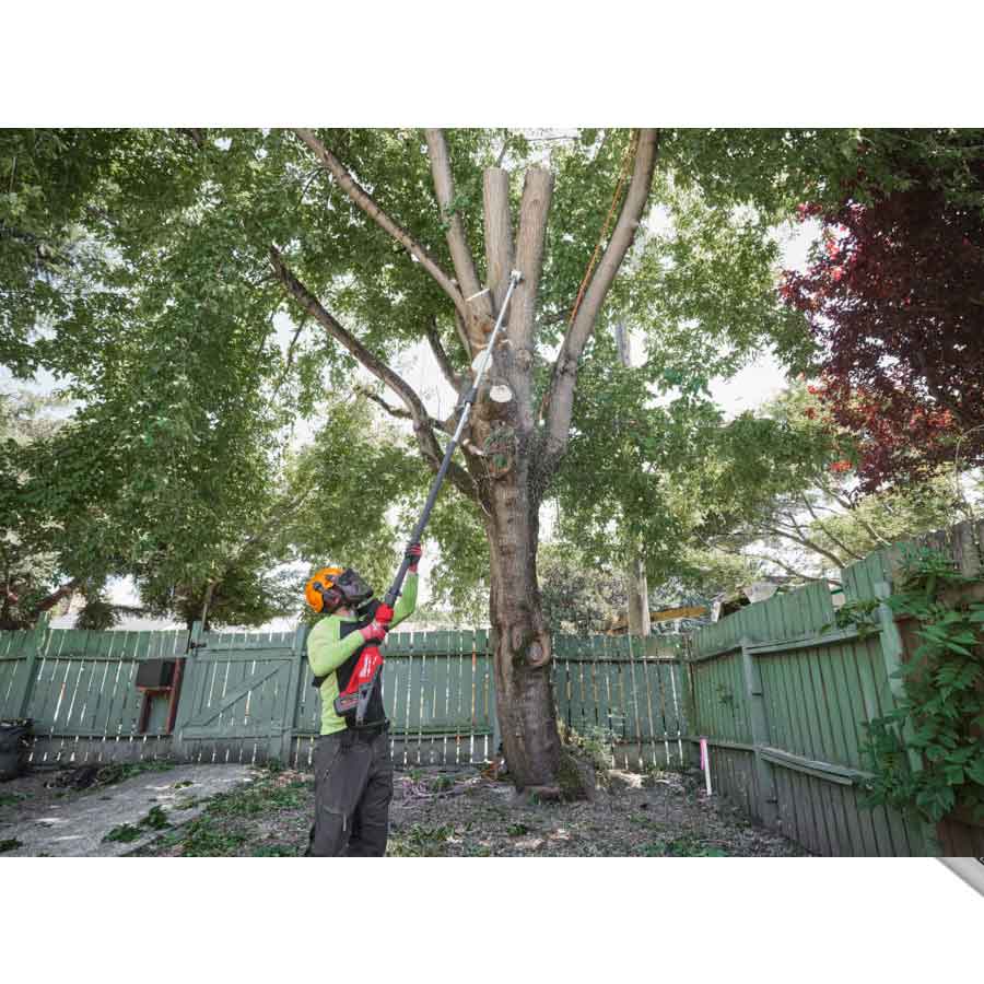 Teleskooppinen ketjusaha yhdistää huippuluokan ominaisuudet tarjoten tehokasta ja monipuolista suorituskykyä vaativissa sahaustehtävissä. Nopeasti säädettävä teleskooppivarsi mahdollistaa käyttäjälle tarkan korkeudensäädön välillä 270 – 400 cm, tuoden työskentelyyn optimaalista joustavuutta. Metallinen oksakoukku ja olkahihnan yhteensopivuus ovat hienostuneita yksityiskohtia, jotka tehostavat käyttömukavuutta. 25,4 m/s ketjunopeus, suuri vääntömomentti ja 30 cm katkaisupituus takaavat tehokkaat leikkaukset, ylittäen perinteiset polttomoottorikäyttöiset kilpailijat vaativimmissakin tehtävissä. FUEL™-teknologia tuo yhteen innovatiivisen hiiliharjattoman POWERSTATE®-moottorin, REDLITHIUM™-akun ja REDLINK PLUS™ -elektroniikan, luoden älykkään ja kestävän kokonaisuuden. Tasapainotettu runko ja ergonominen muotoilu mahdollistavat tarkan työskentelyn puun yläosassa. Herkällä kaasuliipaisimella saavuttaa täyden nopeuden jopa alle sekunnissa. Huoltovapaa ketjun kiristys sivulta helpottaa ylläpitoa ja kirkkaalla ikkunalla varustettu läikymätön teräketjun öljysäiliö tuo kätevyyttä öljyn tason valvontaan ja täyttöön. Yksi M18™ HIGH OUTPUT™ 12,0 Ah -akun lataus mahdollistaa jopa 70 katkaisua 150 mm x 150 mm puuhun. Laite on yhteensopiva kaikkien MILWAUKEE® M18™ -akkujen kanssa, tarjoten luotettavan suorituskyvyn kaikissa olosuhteissa.