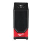 Kaiuttimessa on useita ripustusmahdollisuuksia integroitujen koukkujen ja läpivientireikien ansiosta, sekä suojattu USB-C-virtalähde elektronisten laitteiden lataamiseen. Puhelinten säilytystila on integroitu kaiuttimeen. Käyttöaika on koko työpäivän verran M18™ 5,0 Ah -akulla, ja laite toimii kaikilla MILWAUKEE® M18™ -akuilla.
