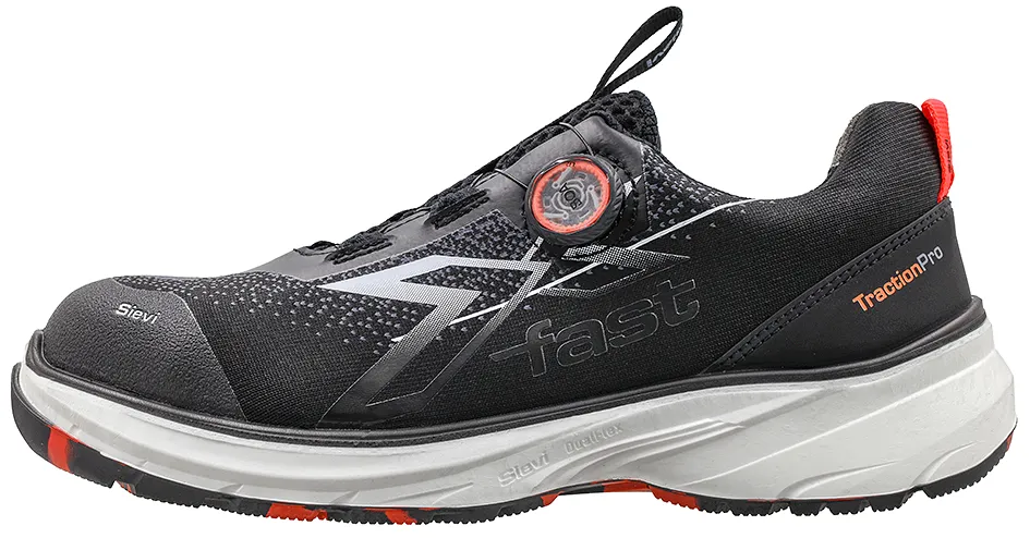 Sievin uuden sukupolven FastX® DFlex -turvakengän erittäin kevyt ja koko pituudeltaan joustava pohja muodostuu Sievi DualFlex+® -joustovälipohjasta, TractionPro®-kitkapohjasta ja jalkineeseen vakautta tuovasta, johtavasta polyuretaanikerroksesta. Kengässä on uusi, mikrosäädettävä BOA® Fit System Li2 -mekanismi, jonka eteen-taakse-toiminnolla jalkineen voi säätää tarkasti jalkaan sopivaksi.