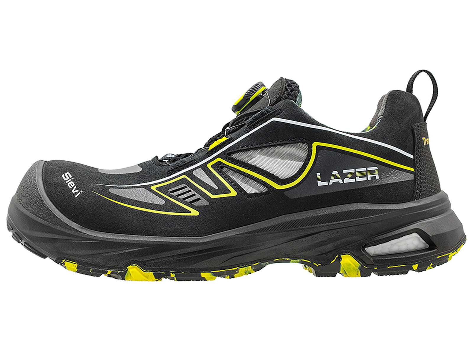 FlexEnergy®-joustoelementti yhdistettynä kantaosassa oleviin aukkoihin mahdollistaa elementille suuremman liikkuvuuden ja lisää jalkineen edistyksellistä joustavuutta. Päällisen sivuilla oleva verkkokangas edistää jalkineiden hengittävyyttä. BOA® Fit System -kiinnitysmekanismin avulla jalkineet ovat nopeat pukea ja riisua. Erinomaisen pidon varmistaa Sievi TractionPro® -kitkapohja.