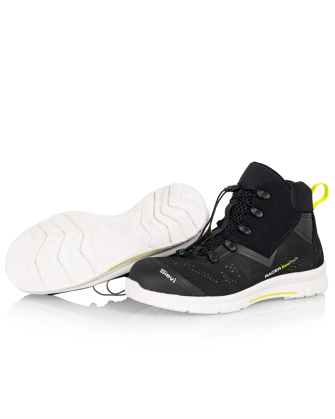 Sievi Racer EcoTech H S3L kotimaiset ja sporttiset turvanilkkurit työhön ja vapaalle! Tämä turvakenkä on erittäin kevyt kierrätysmateriaaliensa ansiosta sekä äärimmäisen mukava jalassa!