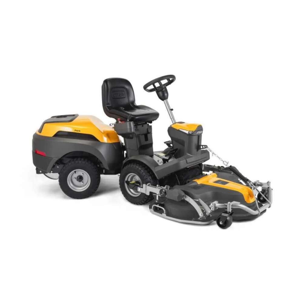 Park 500 WX -etuleikkuri suoriutuu tehokkaasti kaikista leikkuutöistä ja rinteistä sen erittäin tehokkaan 2-sylinterisen, 586 cc STIGA ST 550 Twin -moottorin ja nelivetoisen Tuff Torq -vaihteiston ansiosta. Tätä päältäajettavaa ajoleikkuria on helppo ohjata ja hallita myös esteiden ympärillä sen aidon runko-ohjauksen (50:50) ja innovatiivisen rungon rakenteen ansiosta. Iso leikkuuleveys (leikkuulaitteita saatavana 95-125 cm leveyksillä) mahdollistaa Park 500 WX -etuleikkurin nopean leikkuun. Eteen sijoitetun leikkuulaitteen ansiosta näkymä eteen on selkeä, kulmista leikkaaminen on helppoa ja myös reuna-alueiden leikkuujälki on kaunis. Kelluvana leikkuulaite suoriutuu helposti myös epätasaisista pinnoista. Quick Flip -mekanismin avulla puhdistat leikkuulaitteen helposti. Kompakti hallintapaneeli istuimen vieressä sisältää hyödyllisiä ominaisuuksia, kuten sähköisen leikkuukorkeuden säädön. Mukavuutta lisäävät mukavuusistuin alaselän tuella ja iso jalkatila. Minkälainen maasto tai ruohon pituus onkaan, istu alas, rentoudu ja anna Park 500 WX -etuleikkurin huolehtia kaikesta. Perävaunun vetokoukku mukana.